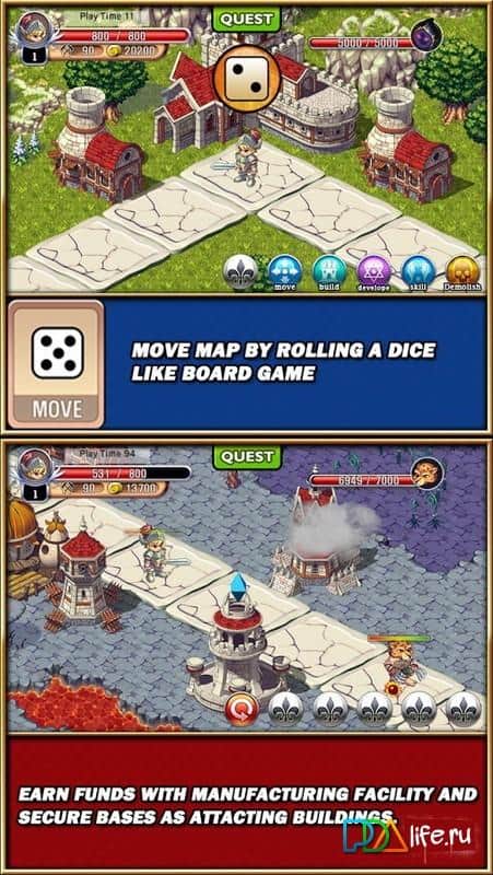 Dice Craft – стратегическая настольная игра на андроид, действия которой происходят в реальном времени. В этой игре вы будете устраивать территориальные битвы между человеком и животными. Начните свое путешествие прямо сейчас и постройте как можно больше зданий, перемещайтесь по карте кидая кубик, собирая ресурсы и сражаясь с врагами используя магию. Вас ждут два режима игры первый режим истории с огромными территориями для строительства и захвата, а второй режим миссий с разнообразными квестами. Выполняйте различные задания, на которые вам будут даваться три уровня, сражайтесь с монстрами и захватывая их территории.