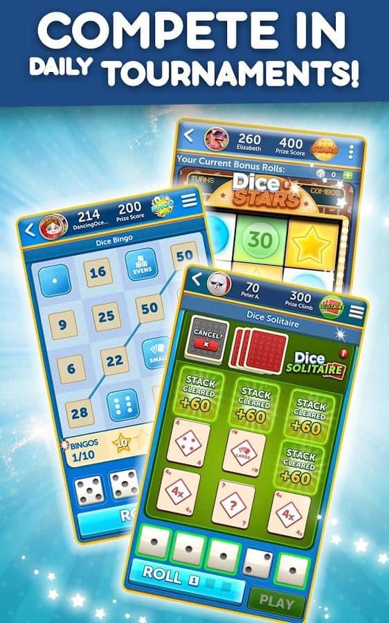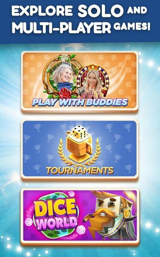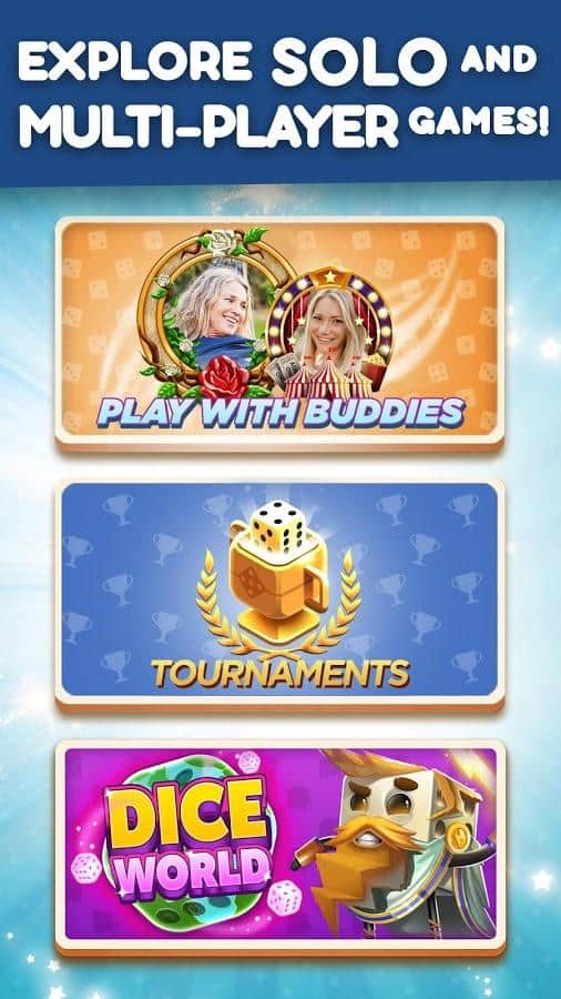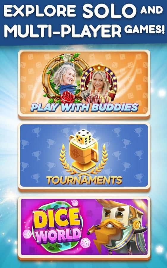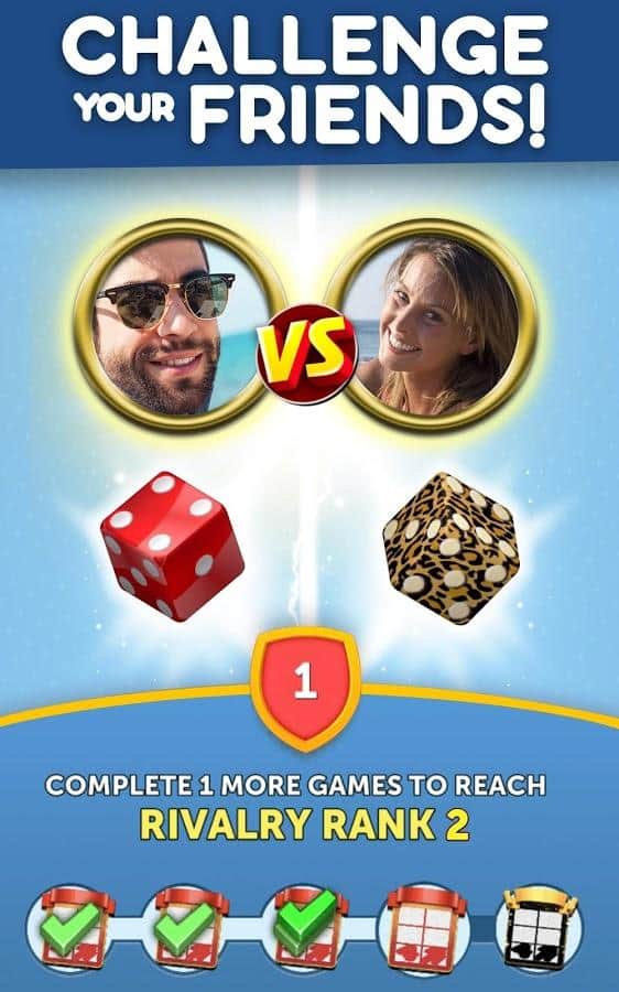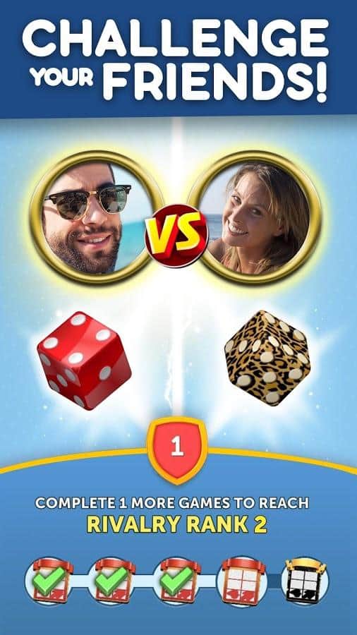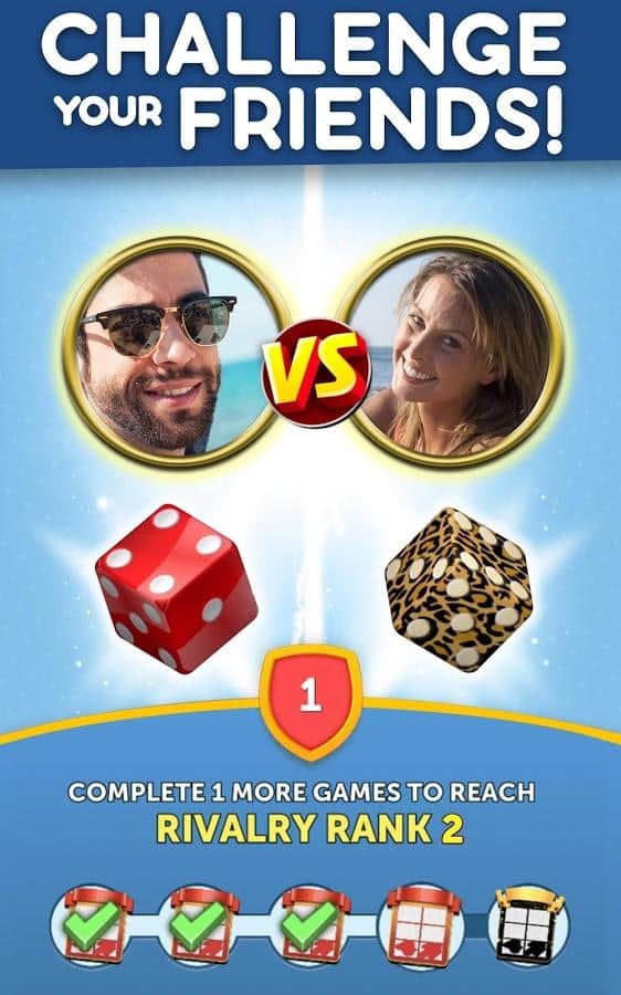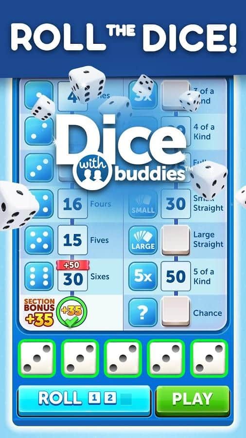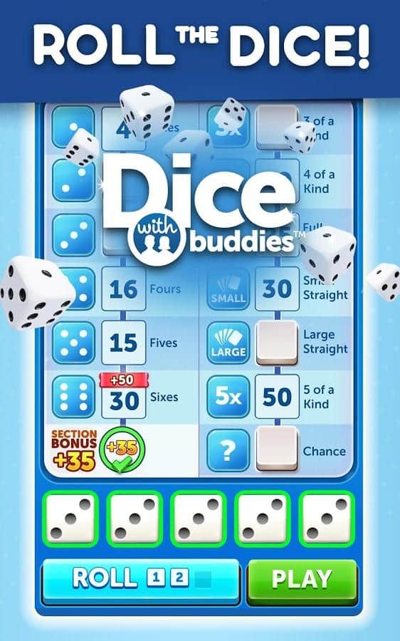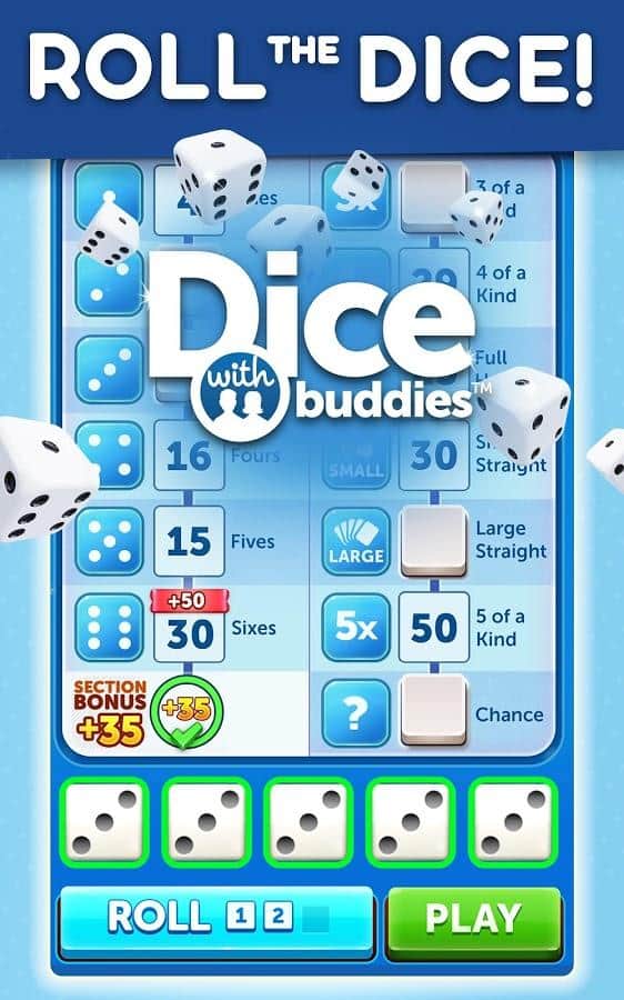 Dice With Buddies - это классическая настольная игра в кости на Android. Цель игры - набрать как можно больше очков, бросая различные комбинации. Ваши 5 кубиков можно бросать до 3 раз за ход, чтобы получить наивысшую комбинацию. Чтобы выиграть игру и заработать награды нужно получить больше очков, чем ваш оппонент. Кроме того, в Dice With Buddies присутствуют комбинации из игры в покер: Full House, Three-of-a-Kind, Four-of-Kind, Small Straight, Large Straight.