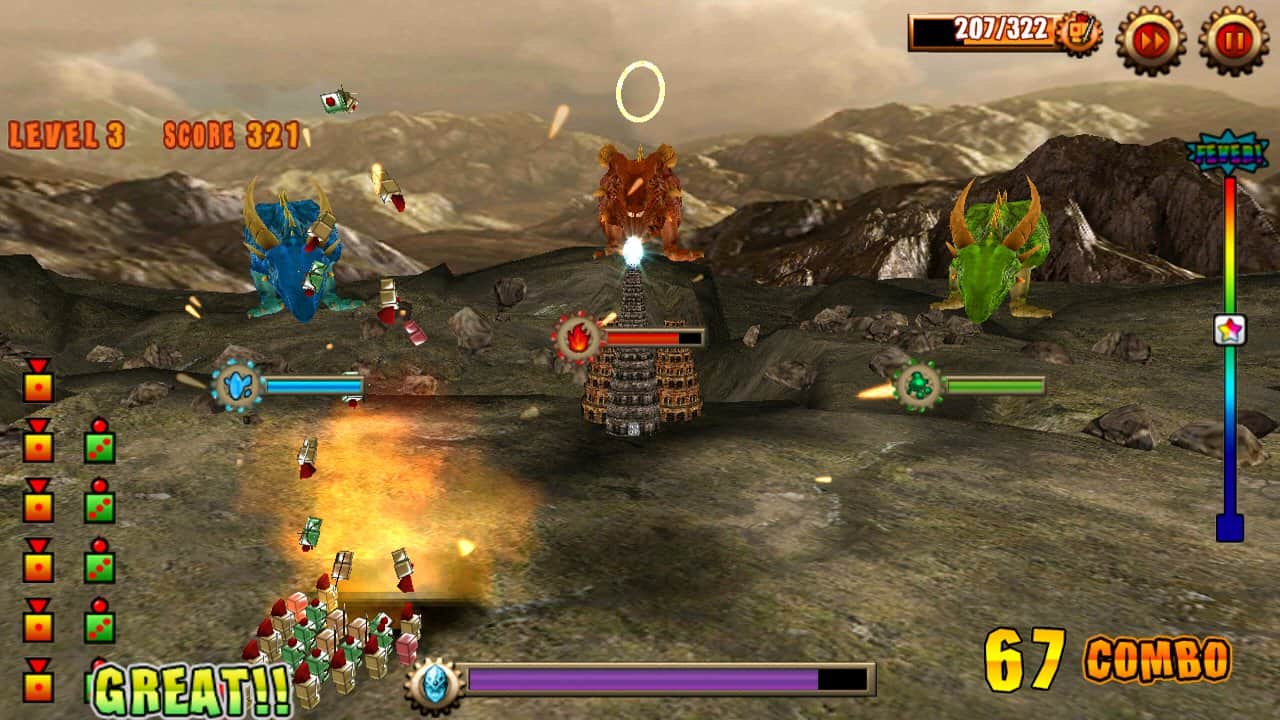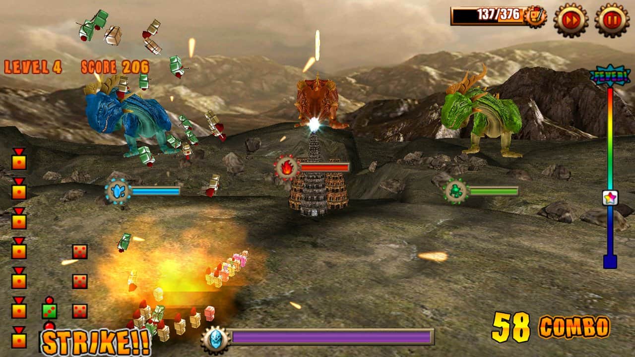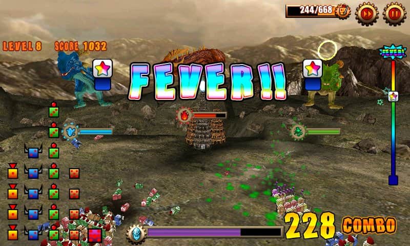 DiceSoldier vs Dragon - игра на андроид, в которой вам предстоит защищать замок с помощью трех разных драконов. Огненный, Ледяной и Кислотный дракон, каждый из которых имеет свою собственную атаку например: ледяной замедляет, кислотный повреждает противника на длительное время, а огненный убивает огнем и он же самый сильный из всех. Разрабатываете стратегию по использованию их силы, чтобы избавится от захватчиков навсегда.
