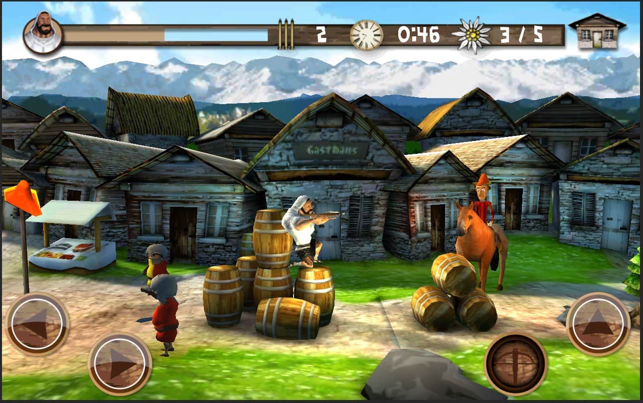 Die Legende des Wilhelm Tell - Замечательная трехмерная аркада, с красивой графикой и замечательным веселым героем. Его зовут Вильгельм Телль, и ему предстоит бороться за Швейцарию против варварских Габсбургов. Так же на пути будут появляться различные звери, такие как медведи и волки. Приятным удивлением для игроков будет наличие дополнительного бонусного уровня, который можно открыть после прохождения основной сюжетной линии.