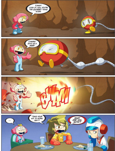 В ней мы будет в жанре Run'n'Gun убивать различную нечисть в космо костюме. Видимо, уже после приключений космоса, она тоже решила осесть и они с Тайдзо как-то познакомились,