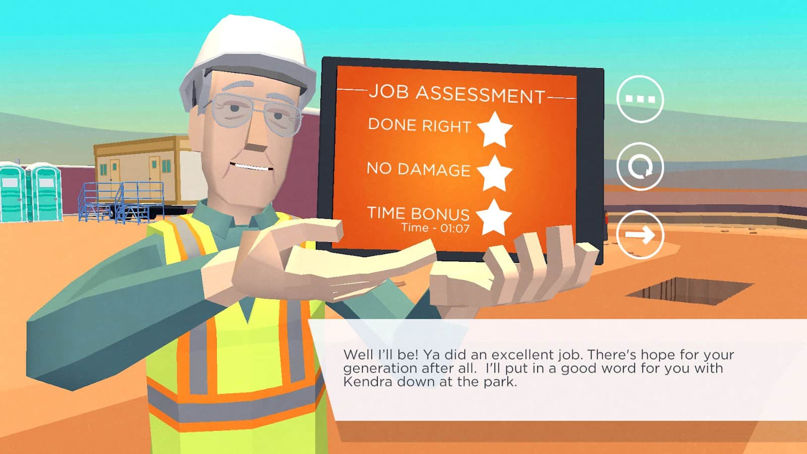 Dig In: An Excavator Game - согласно задумке авторов вы будете выполнять роль оператора тяжелой строительной техники, проще говоря водителя экскаватора. При этом вы будете выполнять все обязанности характерные для данной профессии, то есть помимо управления самой техникой вам предстоит выполнять различные задания, такие как изъятие грунта, перемещение его в другое место, корректировать места под строительные площадки и многое другое.