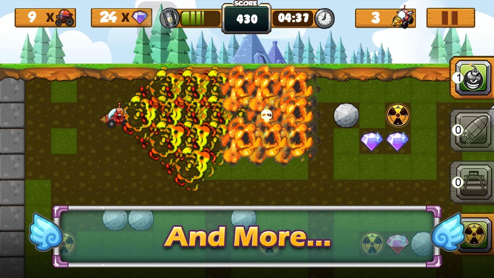Digger I - Treasure Rush – увлекательная аркада на андроид, сделанная в стиле Boulder Dash. В этой игре вы попадете в подземное царство, где вашей главной задачей будет собрать все алмазы на уровне и уничтожить определенное количество врагов. В игре вы возьмете под свой контроль небольшой автомобиль, который должны провести по опасным уровням и обойти всех врагов. Ваши враги в этой игре автомобили, уничтожить которые вы сможете, расставив мины, бомбы, запустить ракеты или обрушить на них огромный камень. Арсенал оружия в этой игре вас порадует и не заставить скучать, но и враги будут достаточно умными и сообразительными. Путешествуйте по пяти локациям и пройдите более 100 уровней, поднимаясь вверх в таблице лидеров и достижений.