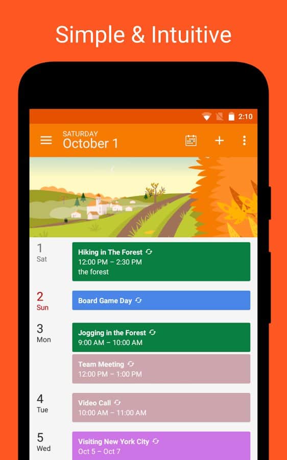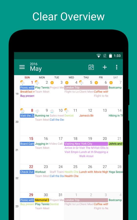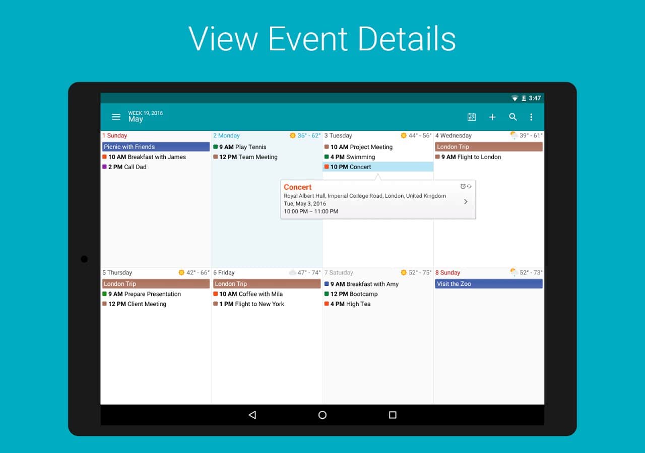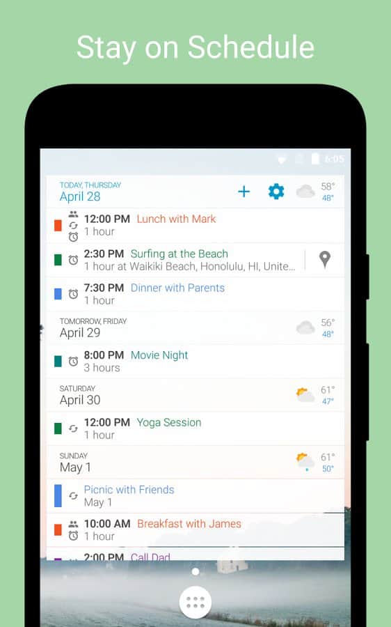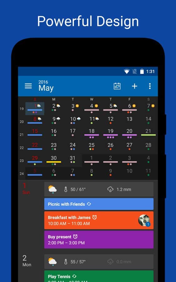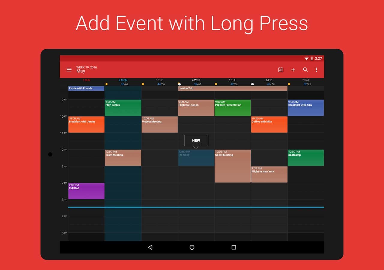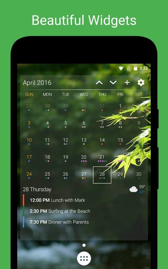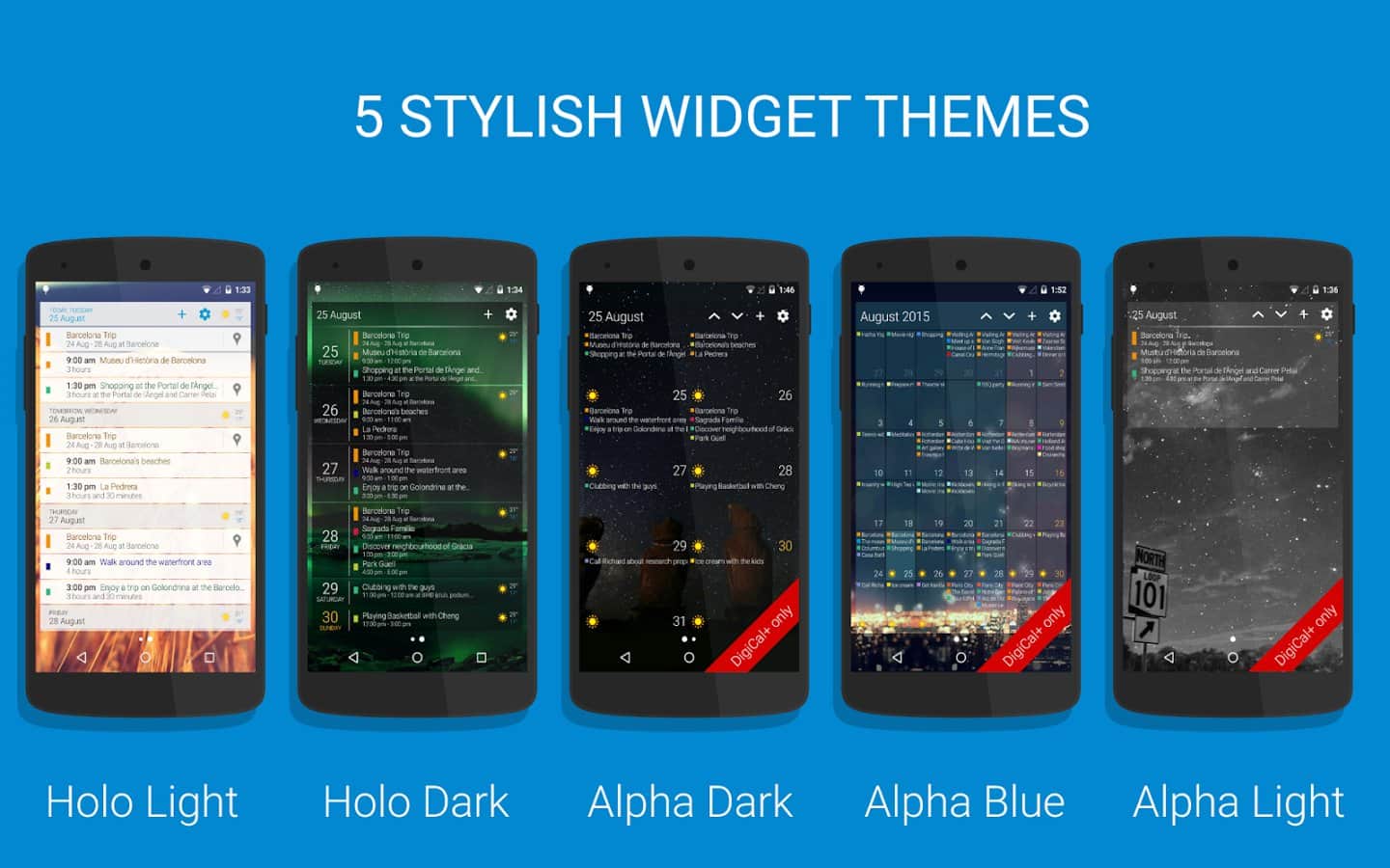 DigiCal Calendar Agenda - Сейчас мало кого можно удивить обычным электронным календарем, однако разработчикам этого приложения это явно удалось. Ведь их календарь не только красиво выглядит, но и имеет кучу всяких полезных настроек и фильтров. Помимо этого, оно может синхронизироваться с другими календарями, таким образом вы не потеряете свои заметки, даже если удалите приложение. Удобный интерфейс с помощью которого вы сможете просматривать записи на день, неделю или месяц, а так же легко настраиваемый дизайн.