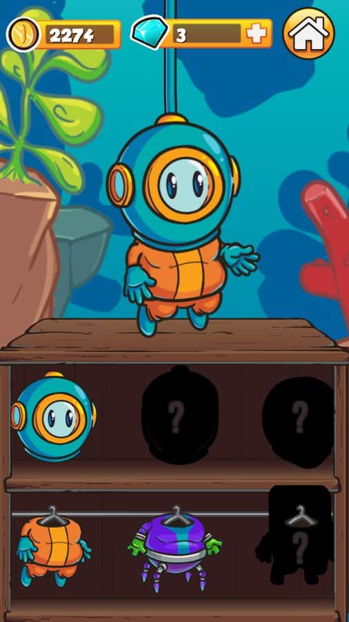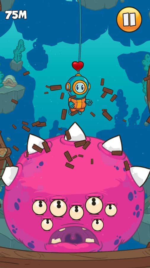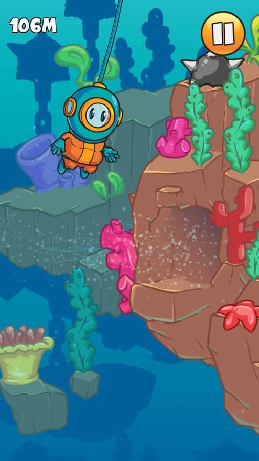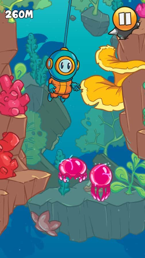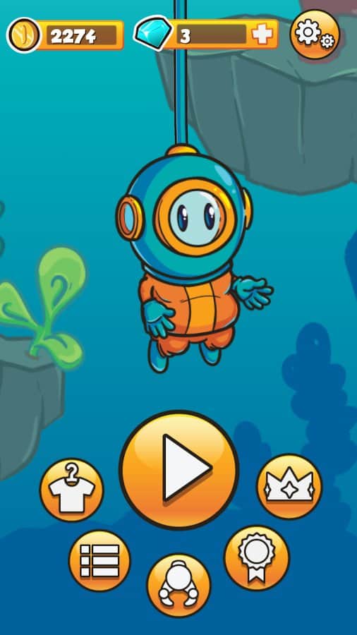 Dinky Diver – аркада на андроид, в которой вы возьмете под свой контроль отважного водолаза. Наш герой решил погрузиться на рекордную глубину помогите ему в этом. Перемещайте героя в разные стороны и избегайте столкновения с многочисленными препятствиями и подводными монстрами. Погрузитесь на самое дно моря и встретесь лицом к лицу с ужасным Кракеном. Опускайте своего водолаза все ниже в темную бездну и следите за тем, чтобы он не столкнулся с острыми клыками акул, скалами, многочисленными рыбами и другими препятствиями, таящимися в толще воды. Открывайте для себя различные костюмы и шлемы и оденьте в них своего водолаза. Соревнуйтесь с друзьями за лучшие результаты.