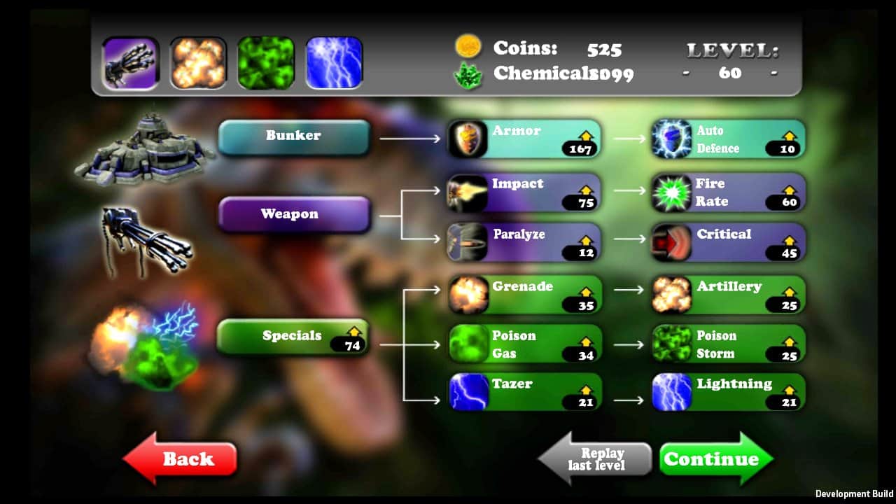 Dino Defender: Bunker Battles - эта стратегия с захватывающей историей, которая расскажет вам о заброшенном острове. Среди океана расположен заброшенный остров, который раньше служил военной базой для подготовки агентов. Но это не обычный остров на нем обитают дикие животные и в том числе динозавры. На этот остров отправили небольшую команду для того чтобы они научились выживать в опасных условиях. Помогите им выжить! Берите в руки оружие и защищайте свою базу от нападения динозавров. В этой игре вы исследуете шесть различных частей острова и сразитесь с мощными динозаврами и огромными боссами. Для боя в вашем арсенале будет огромный набор оружия и боеприпасов, так что разрабатывайте стратегию и уничтожайте врага.