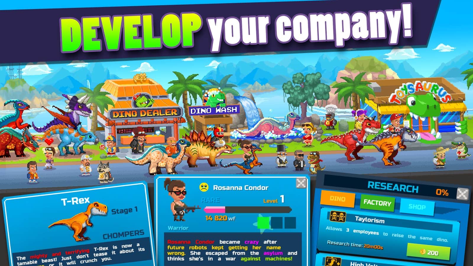 Пиксельная аркада под названием MOTOR WORLD CAR FACTORY хорошо знакома поклонникам жанра. Игровая механика данного проекта построена по довольно простой схеме, ваша задача управляя сбором автомобилей на конвейере по средствам не сложных манипуляций создавать всевозможные транспортные средства, а затем реализуя продукцию развивать свое предприятие. Создатели Dino Factory позаимствовали у MOTOR WORLD CAR FACTORY не только геймплейную механику, но и визуальное исполнение, единственным отличием этих игр является сам подход к "продукции", а именно в Dino Factory вам предстоит развивать динозавров и при помощи всевозможных технических элементов усовершенствовать их.