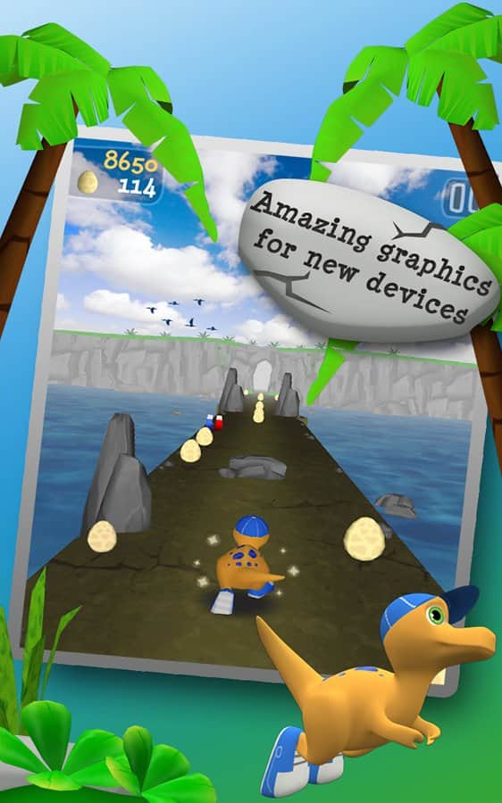 Dino Lost Canyon - игра на андроид, в которой вы попадете в затерянный мир полный динозавров. Вы маленький динозавр сбежавший из дома и отправившийся на поиски приключений. Бегайте, прыгайте и собирайте яйца для того чтобы получить необходимые бонусы, а также остерегайтесь врагов которые будут поджидать вас на каждом шагу. Выбирайте одного из 6 различных динозавров со своими способностями и отправляйтесь в опасное приключение по красивейшим местам планеты.