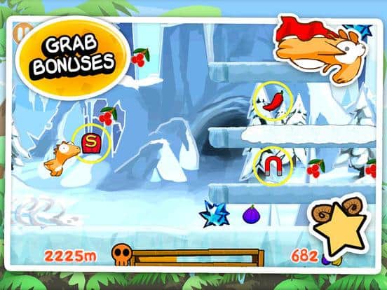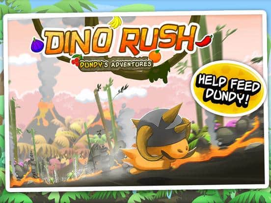 Dino Rush – платформер для IOS, где вы будете помогать милому динозаврику поедать множество фруктов. Наш герой только появился на свет и теперь жаждет еды, вашей задачей будет помочь ему пройти все уровни съесть как можно больше фруктов и обойти все преграды у себя на пути. Прыгайте, бегайте и ступайте в бой с многочисленными врагами, которые то и дело будут появляться у вас на пути. Также не забывайте про бонусы, которые дадут вам дополнительные возможности и усиления. Накормите динозавра сочными фруктами и не дайте ему помереть с голода.