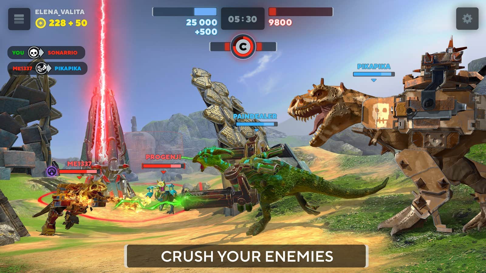 Dino Squad - мультиплеерный экшен на Android, в котором вы будете управлять собственным динозавром. Вам придется сразиться с другими игроками в динамичных боях. Вас ждет множество захватывающих сражений, шикарная графика, огромный арсенал вооружения и множество различных карт динозавров. Выбирайте свой стиль и вступайте в бой прямо сейчас.