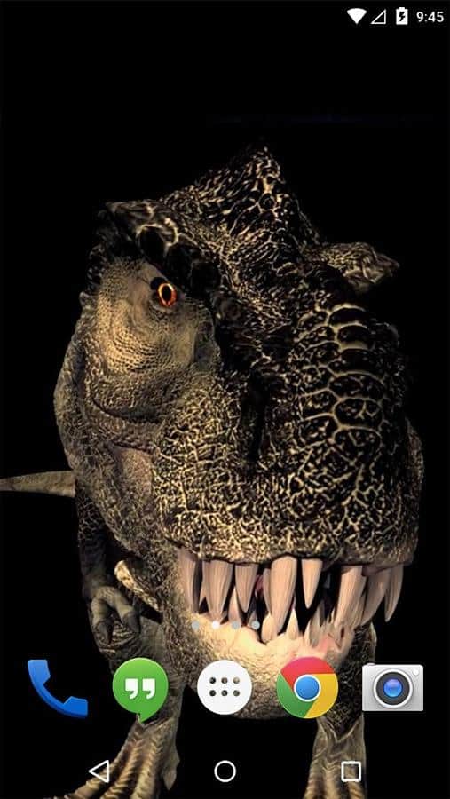 Dino T-Rex 3D Live Wallpaper - Настоящий динозавр, в вашем устройстве. Установите и убедитесь сами, что динозавры, это страшно! На первый взгляд он будет очень спокойным, и не будет совершать резких движений. Но стоит вам коснуться экрана, как эта машина смерти, бросится прямо в камеру. И поверьте мне, это очень захватывающее зрелище. Вы можете выбирать, смотреть лишь за его милой мордашкой, или за всем динозавром целиком. Эти обои, разнообразят ваш рабочий стол, и придадут ему интереса. Так же, они не слишком прожорливы к батареи, так как динозавр особо не двигается, пока его не тревожить. Испугайте родных и близких, настоящим динозавром, на экране вашего устройства.