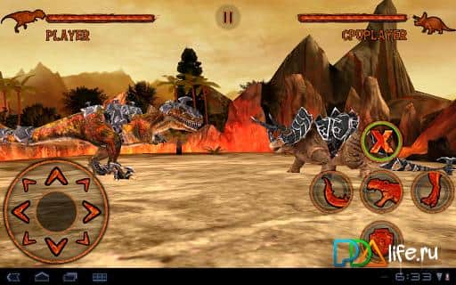 DinoFight - экшен для андроид в чистом виде и необычной реализации, ведь главные действующие лица - динозавры. Да, именно бои динозавров и составляют весь геймплей! Это вам не простые воины со сверх способностями, а настоящие мощные бойцы. Их рев, когти и сила просто ошеломляют и у вас есть уникальная возможность все это попробовать в управлении. Играйте в одиночку, мультиплеер или обучение! Приобретайте навыки необычных сражений и побеждайте! Со временем вы сможете улучшить свои боевые навыки и защиту! Вперед, в доисторические сражения!