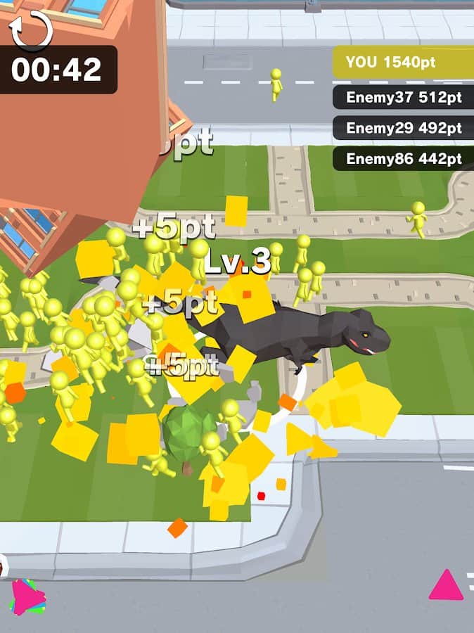 Dinosaur Rampage – экшен на андроид, где вы будете управлять динозавром. Динозавры воскресли в наши дни и перемещаются по городу круша все вокруг. В этой игре вам выпадет уникальная возможность управлять динозавром и разрушать город. Управляйте динозавром с помощью одного прикосновения пальца к экрану и пугайте людей и разрушайте самые большие и высокие здания в городе. Выиграет тот игрок кто разрушит весь город и сможет одолеть самую высокую башню в городе. По пути не забывайте собирать монетки, которые сделают вашего динозавра еще сильнее и выносливей.