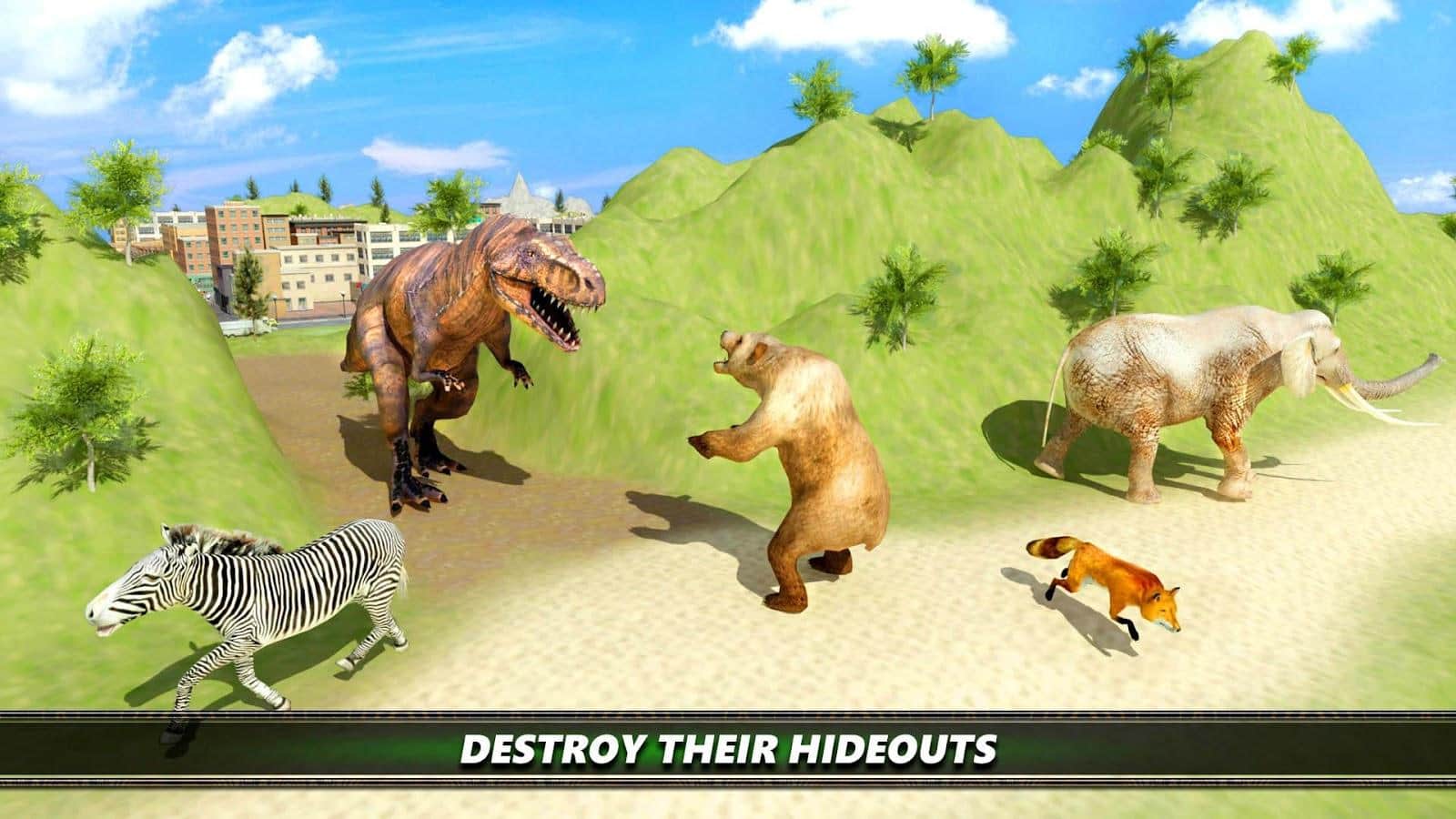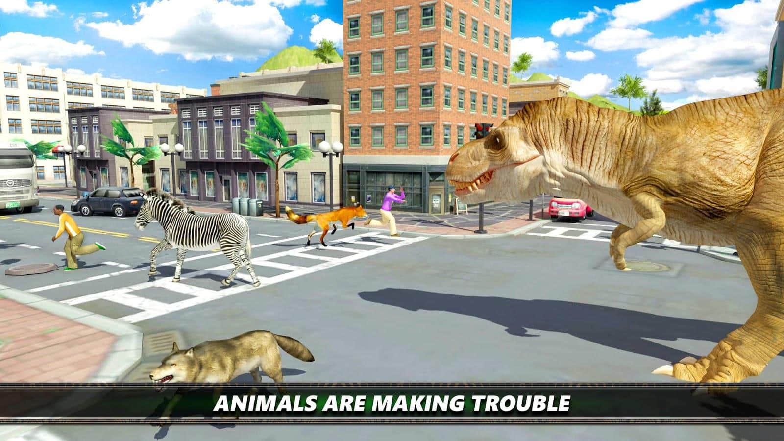 Dinosaur Simulation 2017- Dino City Hunting - симулятор динозавра игровая механика которого выполнена в стиле безбашенного экшена, вам предстоит в роли огромной рептилии отправиться на улицы города и постараться уничтожить как можно больше диких животных и нанести максимальные разрушения. Да идея игры далеко не нова, но при этом Dinosaur Simulation 2017- Dino City Hunting выполнен достаточно качественно, отличная графика, различные миссии, выбор героев все это позволит вам весело и задорно провести свободное время.