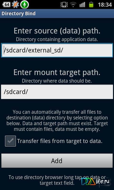 Directory Bind - уникальная программа для андроид, которая позволит вам перенести любые приложения на карту памяти (microSD), на USB носитель подключенный через USB-OTG, своим простым и понятным способом. Все что вам нужно – это точно знать путь каталога в котором находятся нужные Вам файлы (пути папок ВВОДА/ВЫВОДА) и создать подобный каталог на флешке или другом носителе. Сразу отмечаем, что стабильная бэта версия программы, требует наличия Root прав.