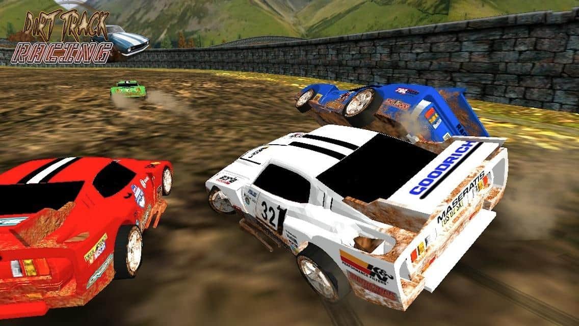Dirt Track Racing - Простенькие дерби гонки на андроид. В игре используется неплохая трехмерная графика, с немного угловатыми текстурами. Вас ждет восемь реалистичных трасс с различными поворотами и трамплинами. Управление в игре достаточно простое, и не требует какой-то сноровки или привыкания. Также в игре неплохая физика управлением автомобилем, что не может порадовать.
