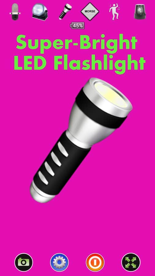 Disco Light LED Flashlight - отличное приложение сочетающее в себе фонарик, цветомузыку и отличный способ общаться с помощью света и азбуки Морзе. Нажимаем кнопку и вспышка вашего телефона превращается в обычный удобный фонарик – эта функция проста и понятна. В шумном клубе, на молодёжной вечеринке или на дискотеке пригодится цветомузыка которая будет переливаться различными цветами, присутствует режим стробоскопа. Интересная особенность приложения заключается в том, что написав слово, приложение будет его озвучивать в виде азбуки Морзе, естественно пользуясь всё той-же вспышкой. Есть также режим полицейской сирены.