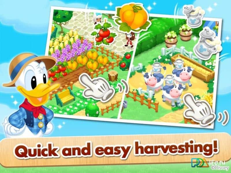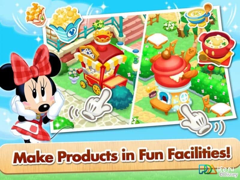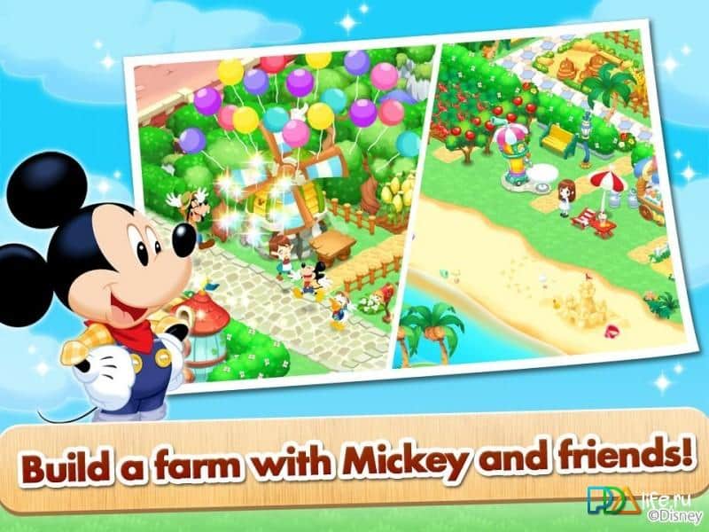 Disney Dream Island – увлекательная игра на андроид, которая перенесет вас в сказочную страну, где вы встретитесь с Микки-Маусом и его друзьями. В этой игре вы будете помогать любимым персонажам сказок, заниматься фермерским хозяйством. Высаживайте на свои огороды различные культуры и собирайте отличный урожай. Разводите домашних животных и заботьтесь о них. Из полученного урожая производите вкусные продукты, например такие как попкорн. Наслаждайтесь жизнью на ферме и улучшайте ее каждый день, расширяя свои угодья и добавляя декора. Выполняйте различные миссии и играйте с друзьями.