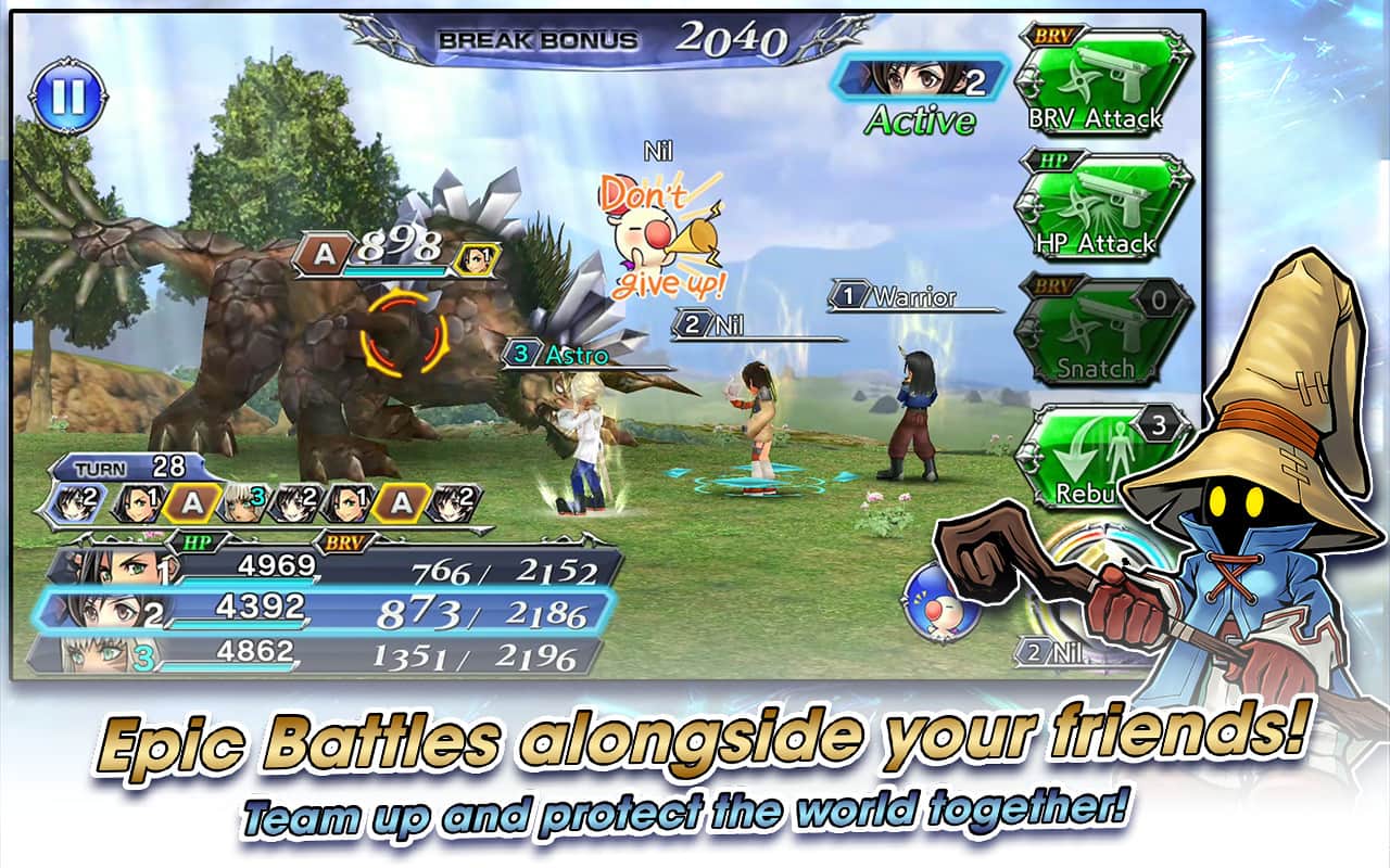 DISSIDIA FINAL FANTASY OPERA OMNIA – финальная серия FANTASY которая собрала в себя многочисленных героев для того чтобы создать новую историю. В этой игре вашей главной задачей будет собрать непобедимую команду и сразится с монстрами и чудовищами, которые пришли в ваш мир для его уничтожения. В этой игре вы окажитесь в новом мире, который был создан для нахождения в нем воинов, где раньше воины могли отдохнуть и найти пристанище, теперь это место стало для них полем боя. Участвуйте в пошаговых боях и выжидайте удачного момента для того чтобы нанести удар, а также улучшайте своих героев делая их более сильными применяя обмундирование и различные способности.