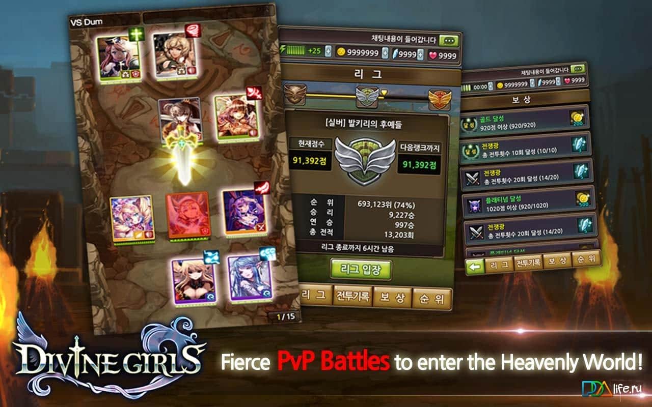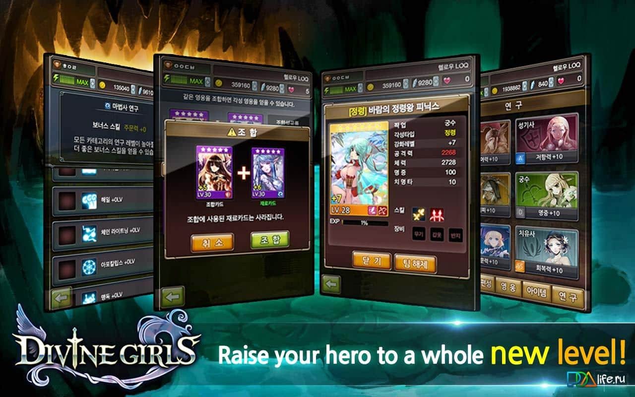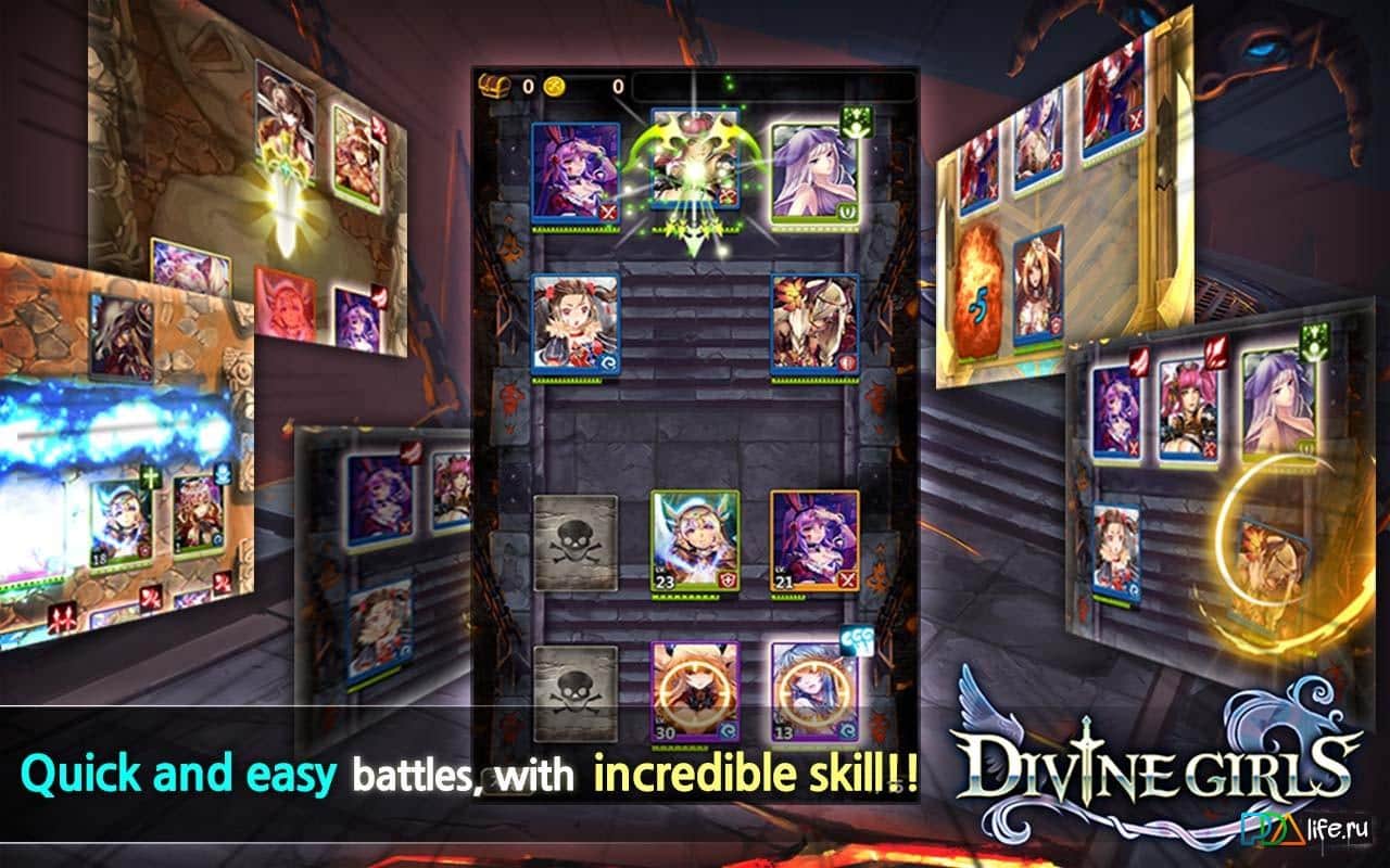 Divine Girls - Карточная РПГ на андроид от команды профессионалов com2us. В игре вас ожидает вечная борьба между добром и злом. Вам предстоит переломить чашу равновесия, и заставить одной стороне преобладать над другой. Всего в игре около трехсот персонажей, которые вы сможете открывать и улучшать. Так же игра насыщена яркими локациями, а также подземельями. Любителей повоевать против живых противников – добро пожаловать в режим PvP.