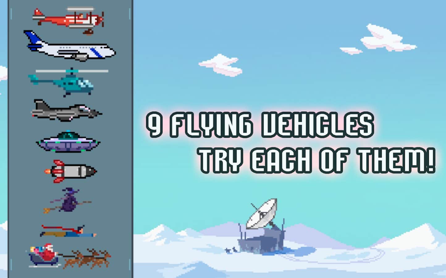 Diving Plane – пиксельный раннер на андроид, который потребует от вас полной концентрации и внимания. В этой игре вы возьмете под свой контроль самолет, который проведете через все локации игры и не дадите ему разбиться. Управляйте самолетом и подключайте всю свою отличную реакцию, чтобы не разбить его о многочисленные преграды и препятствия, вставшие на пути. Летайте по разнообразным локациям и продержитесь как можно дольше в игре. Всего в игре представлено 9 летательных средств, среди них такие как: самолет, вертолет, НЛО, супермен и Санта Клаус. Каждое летательное средство обладает своими уникальными характеристиками и скоростью. С каждым новым уровнем сложность игры будет увеличиваться и вам, все труднее будет проходить ее.