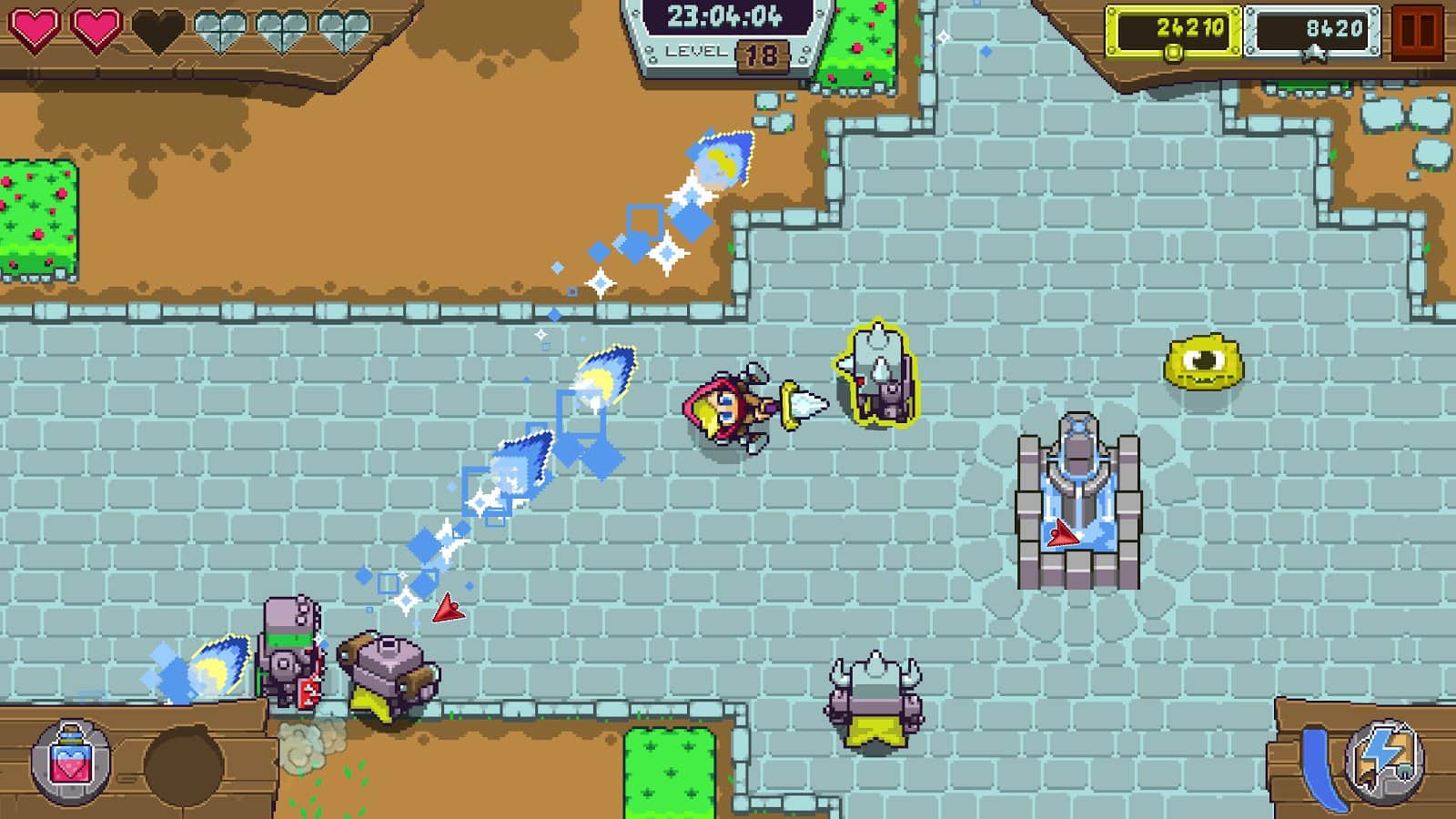 Dizzy Knight динамичная экшен аркада разработчиком которой выступила студия Noodlecake, известная по такому проекту как Alto's Adventure. На этот раз ребята решили обратить наше внимание на жанр экшенов, хотя игра не лишена элементов РПГ и аркады. И так, ваша задача управляя героем перемещаться по карте и уничтожать всех врагов, при этом постаравшись самому избежать ударов. Конечно же по мере прохождения вы будете зарабатывать очки на которые сможете прокачать подопечного, что далеко не лишнее ведь помимо огромного количества монстров вам предстоит сражаться с опасными монстрами.