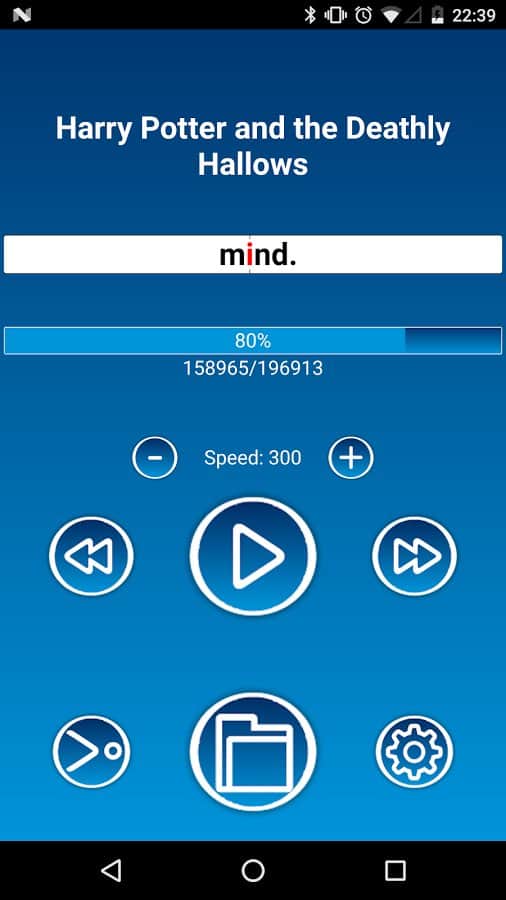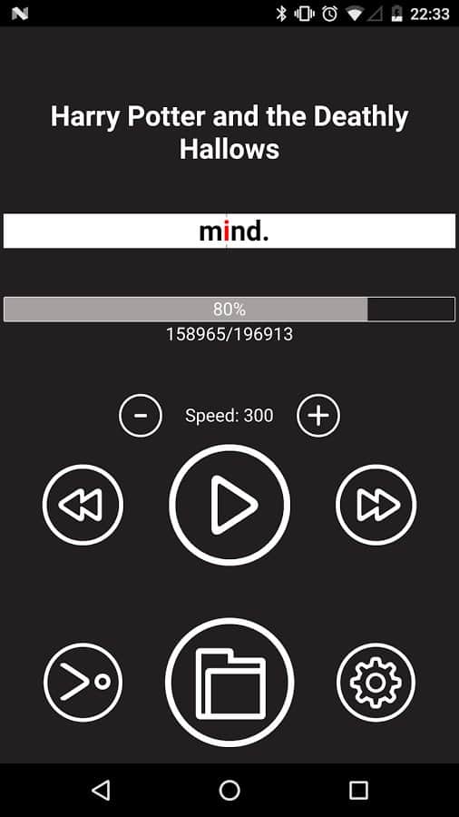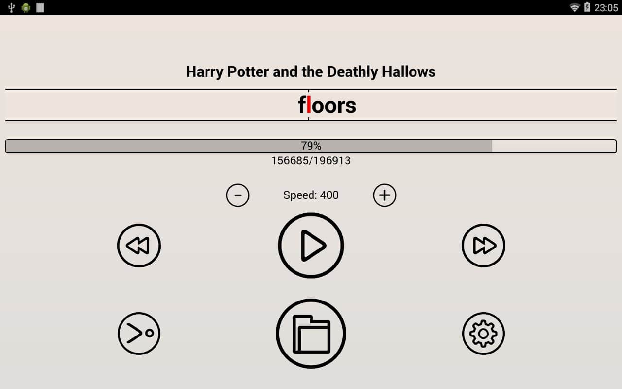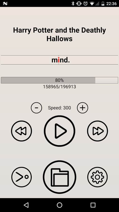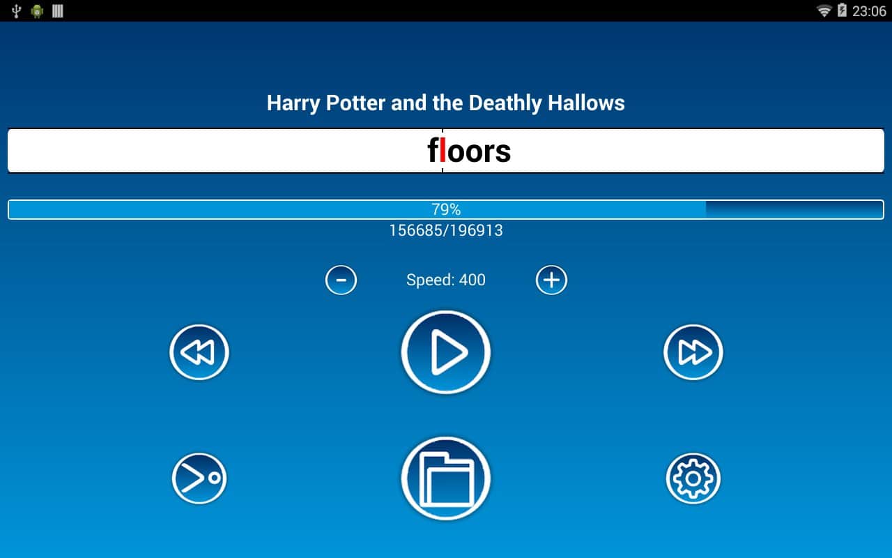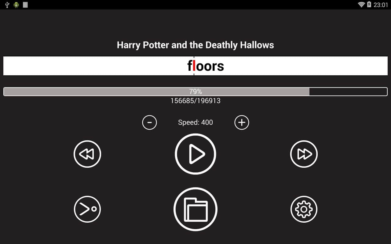 Dizzy Reader Pro - Знаете почему люди так медленно читают книги? Ответ намного проще чем может показаться на первый взгляд. Все дело в том что мы тратим очень много времени на перевод взгляда, с окончания одного слова на начало другого. Поняв это некоторые ученые и разработчики взялись создать приложение которое сможет давать нам слово целиком, без чтения лишней информации. Так и было создано данное приложение, и его суть заключается в том что бы быстро переключать слова и повышать скорость чтения, при этом не теряя смысл самого текста.