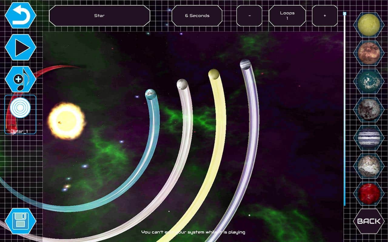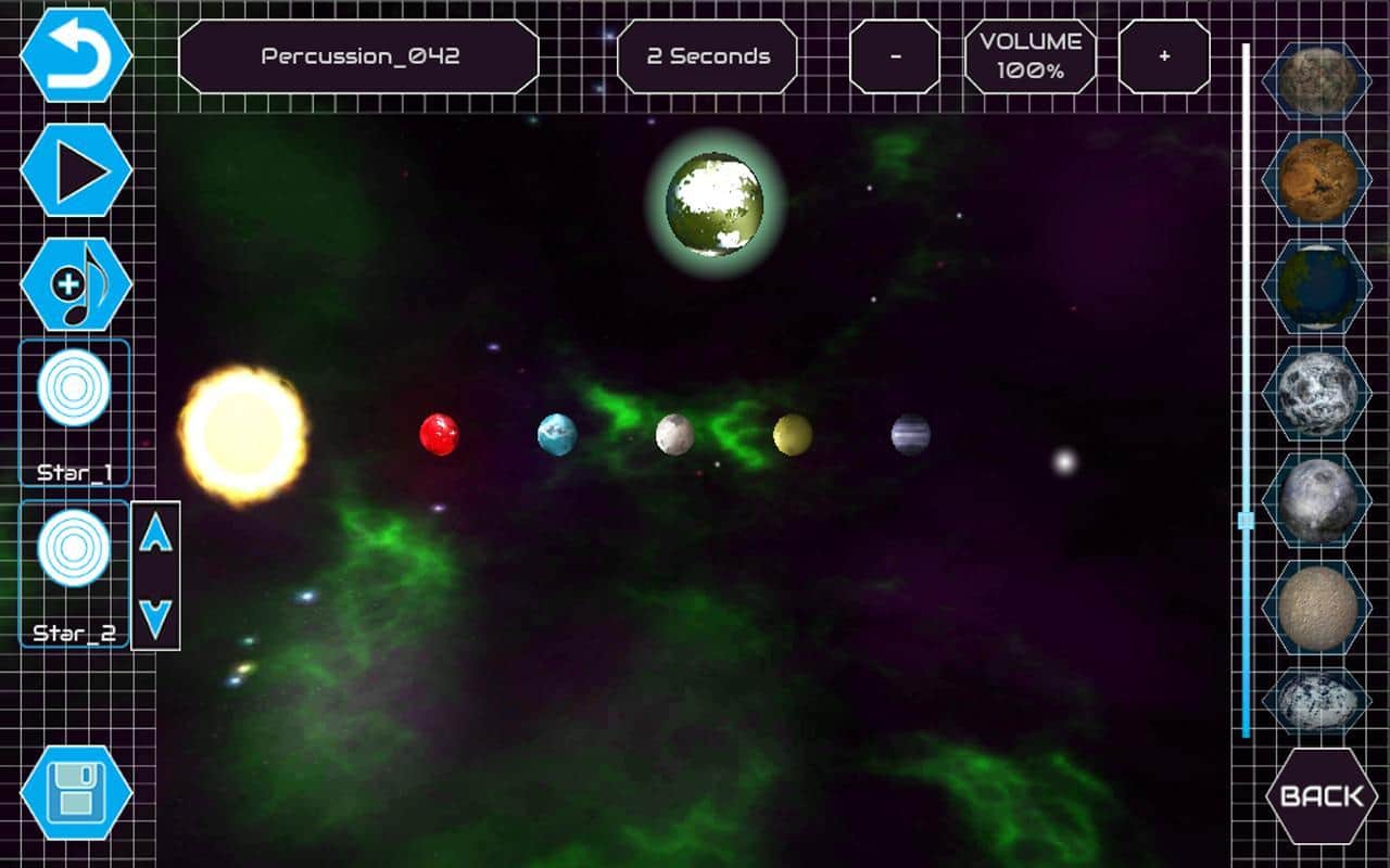 DJ space - попробуйте свои силы в роли диджея в пространстве космоса! Основой для создании вашей мелодии будет некая планетная система (типа нашей Солнечной), в самом центре которой будет звезда. Отталкиваясь от этой звезды, вы будете расставлять в космосе планеты и каждая планета несет в себе определенный звук! Этот звук вы можете корректировать по продолжительности. Каждую созданную вами композицию вы сможете прослушать и подкорректировать и тогда будет создан новый музыкальный шедевр, сопровождающийся цветом оформлением и взрывом звезды в конце. Эта игра - огромная территория с удивительными возможностями для вашего творчества!