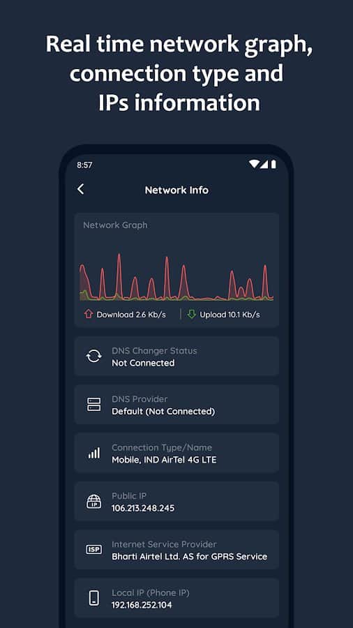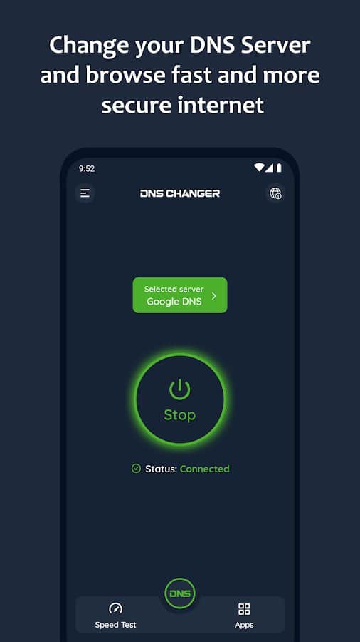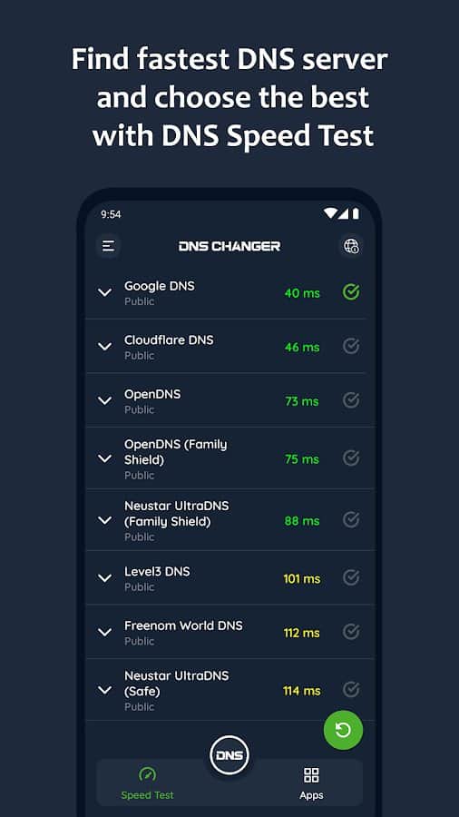 DNS Changer - IPv4 & IPv6 - Спокойно и довольно быстро перемещайтесь по любым точкам Интернета, попросту изменив собственный DNS-сервер! Приложение предлагает уже готовый список серверов для подключения, где вы можете найти фаворитов по скорости и надежности, но если вам ничего не подойдет — в таком случае вы можете добавить собственный сервер. Для поиска самого быстрого DNS внутри вы найдете тестер скорости, а для понимания защиты перед вами будет высвечиваться онлайн сетевой график, где записан типы подключения и IP-адреса.