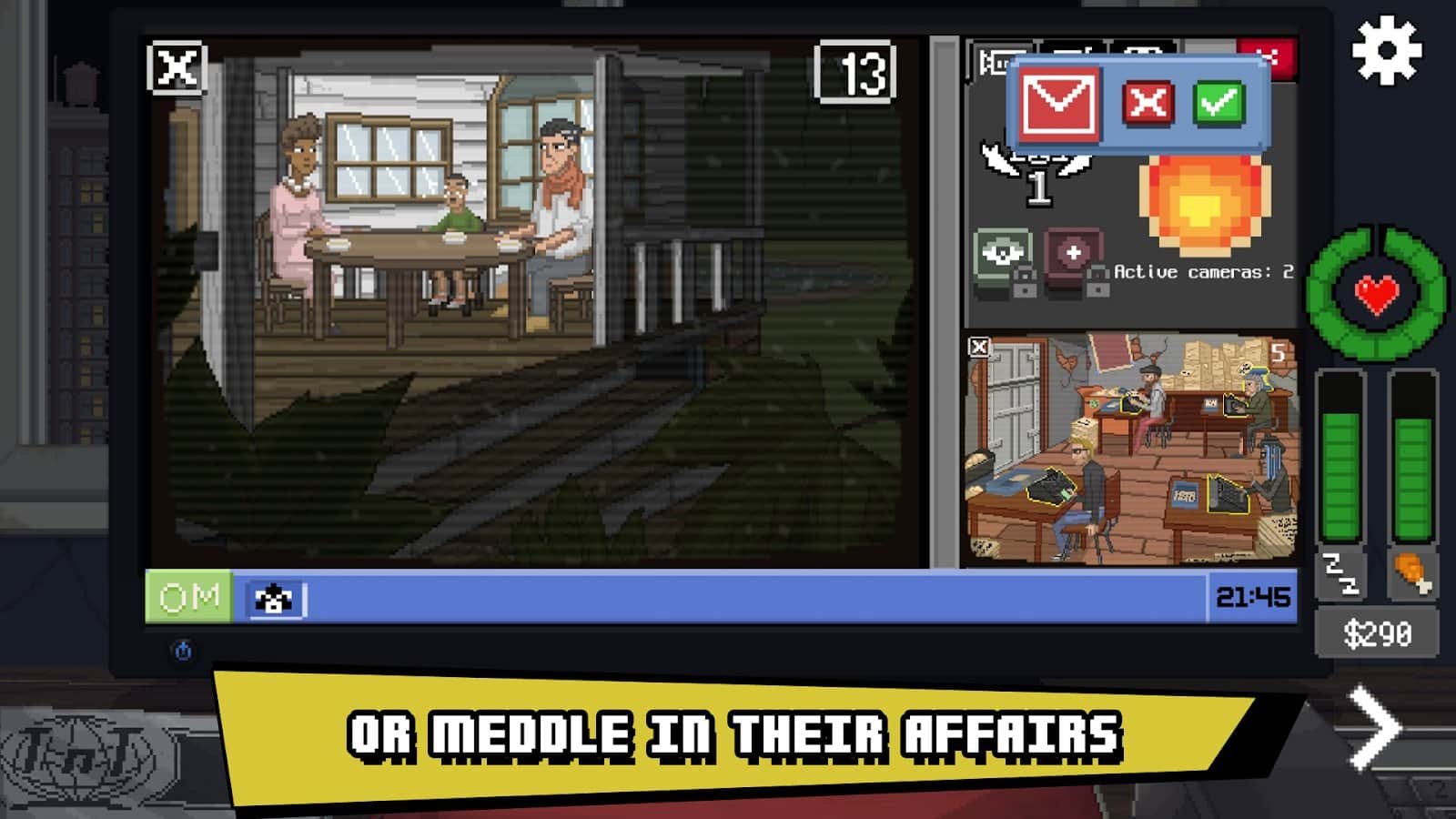 Чего возможно нельзя сказать о геймплее потому что придётся следить за кучей камер с разными событиями, или без событий, так даже проще, в целом немного душит но не прям сильно.