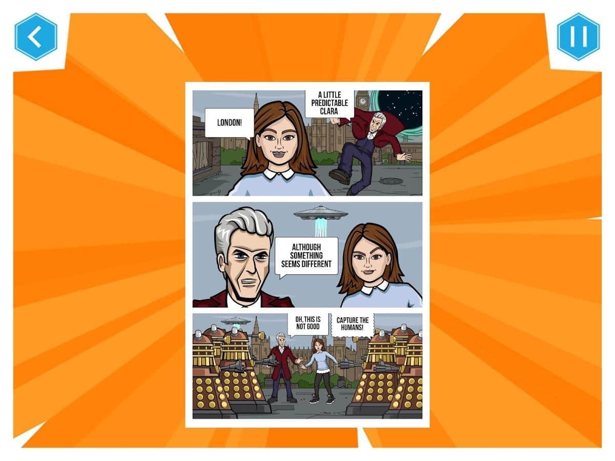 Доктор Кто - культовый британский сериал в научно - фантастическом жанре, рассказывающий о инопланетном путешественники во времени, известном как Доктор. Доктор вместе со своими друзьями перемещаясь во времени и пространстве спасает как отдельных людей так и целые цивилизации. Doctor Who: Comic Creator - официальная игра по знаменитому сериалу, разработчиком которой выступила студия BBC Worldwide. Данный проект позволит вам вместе с участниками легендарной команды поучаствовать в захватывающих событиях из сюжета сериала. К то муже игра получила ряд новых возможностей, таких как создание собственных монстров и героев. После того как вы создадите очередное творение вы сможете протестировать его в боевых условиях. Визуально Doctor Who: Comic Creator выполнена в стиле комикса.