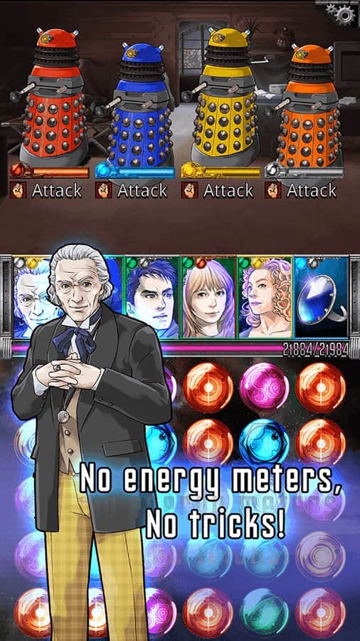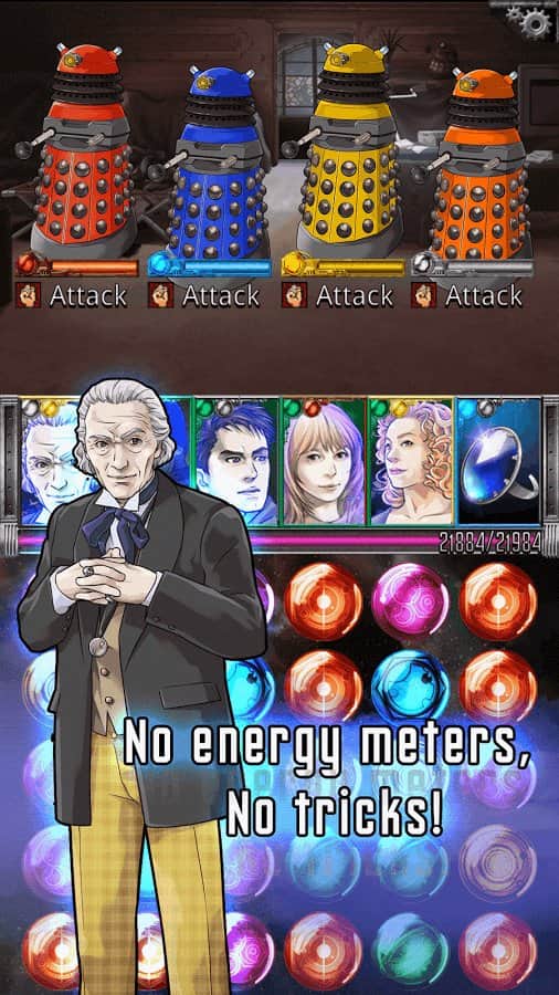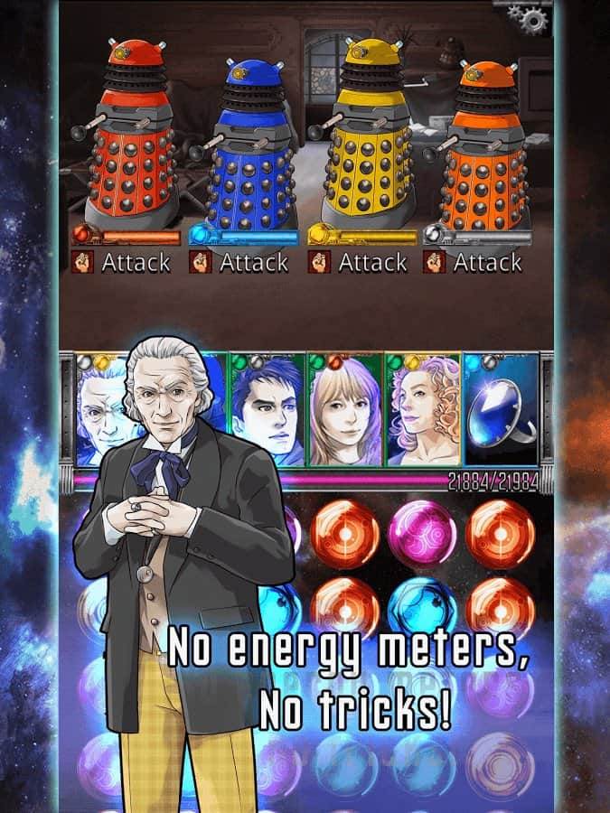 Doctor Who: Legacy - игра на аndroid, из жанра три в ряд. В которой вы вместе с доктором Кто отправитесь в путешествие во времени и пространстве и переживете все опасные события. Повторите все ваши любимые эпизоды из сериала и соберите команду из ваших друзей и союзников таких как Клара, Рори, Эми и многие другие.