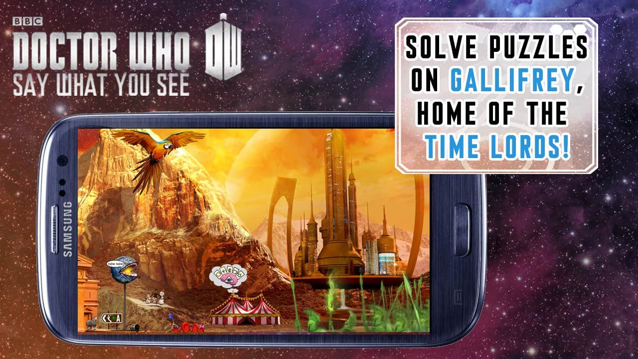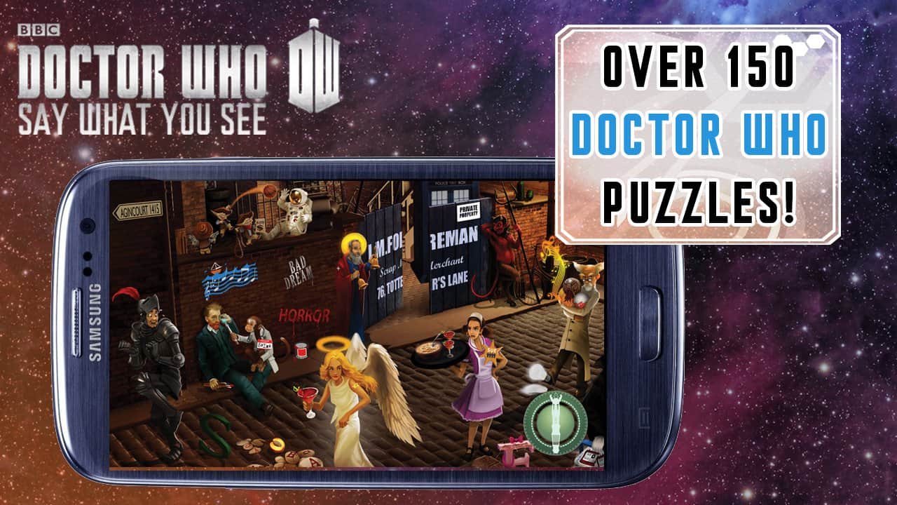 Doctor Who: Say What You See - игра на аndroid, в которой вы будете помогать доктору Кто разгадывать зловещие тайны. Пора спасти Вселенную, и только вы сможете это сделать. Выбирайте с чего вы начнете, то может быть глубины Тардис где будете разгадывать его секреты, таинственный переулок или Галлифрей где вы отправитесь в путешествие к родной планете лордов времени.