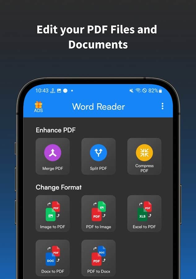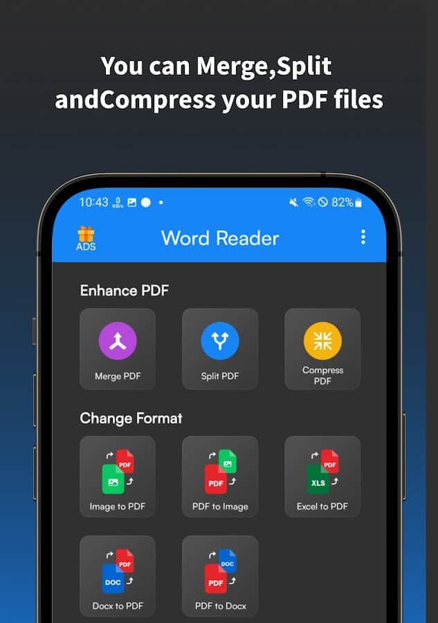 Забудьте о проблемах с открытием документов на смартфоне. Docx Reader Word Office viewer - это универсальное приложение, которое поддерживает все популярные форматы файлов, включая docx, doc, xlsx, pptx, txt и PDF.