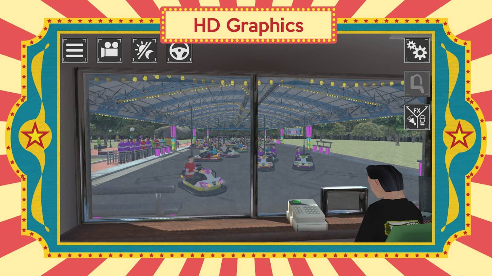 Давно мечтаешь попасть в парк развлечений, но никак не удаётся найти столько свободного времени? Теперь можно кататься на аттракционах не выходя из дома! Dodgem: Bumper Cars - Theme Park Simulator представляет лучший симулятор самых разных аттракционов. Реалистичная графика, множество локаций: прокатись на американских горках, зайди в тематический парк или посети высочайшее колесо обозрения прямо на своём телефоне. Уклоняйся от автомобилей на автодроме, участвуй в гонках не допусти столкновений.