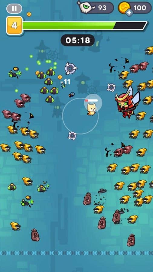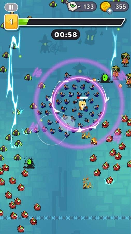Выживайте определенное время, чтобы завершить игру.