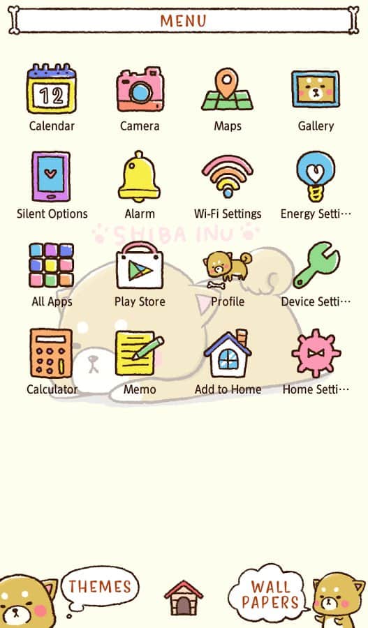 Dog Wallpaper Cute Mini-Shiba Theme - для андроид устройств позволит вам выбрать популярные картинки и бесплатно установить их в качестве темы или обоев. А с дополнением +HOME возможностей использования будет ещё больше, с помощью нее можно преобразить любое изображение, виджет или иконку одним нажатием на экран. Более тысячи скинов сделают ваш смартфон ярким, оригинальным и привлекательным. Простой и удобный интерфейс приложения, поиск стильных картинок по категориям позволят вам поистине насладиться этим многофункциональным приложением.