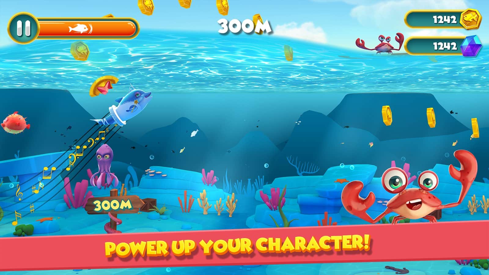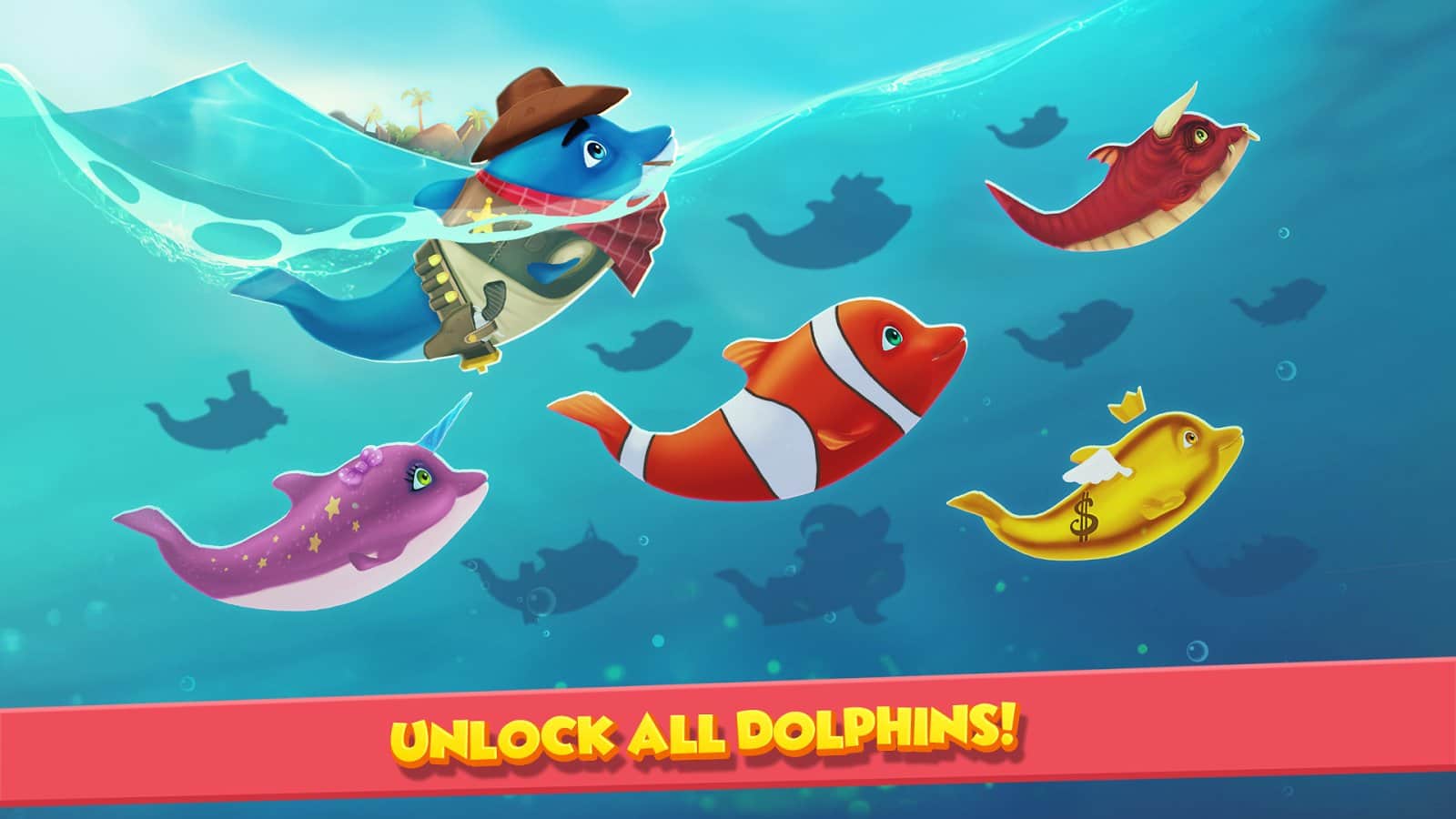 Dolphy Dash – проведите дельфина по многочисленным уровням игры и исследуйте глубины океана. В этой игре вы возьмете под свой контроль дельфина Дельфи и поможете ему пройти все испытания и достичь финиша. Наш герой отправился в далекое путешествие и вашей задачей помочь ему не попасть в ловушку и обойти все препятствия на своем пути. По пути своего следования собирайте золотые монетки и многочисленные бонусы. Крутите колесо и открывайте для себя новых дельфинов. Достигните невероятных результатов в этой игре и поднимитесь на самый верх таблицы лидеров.