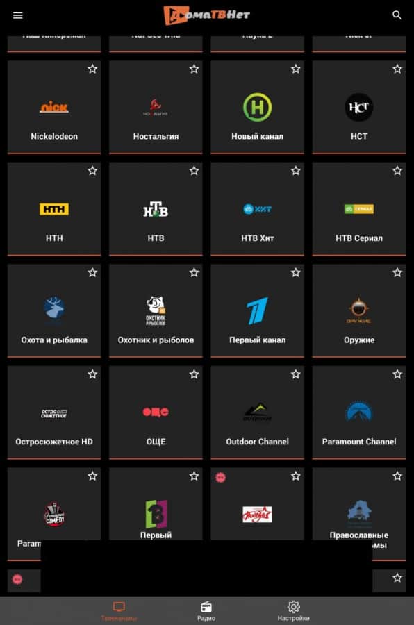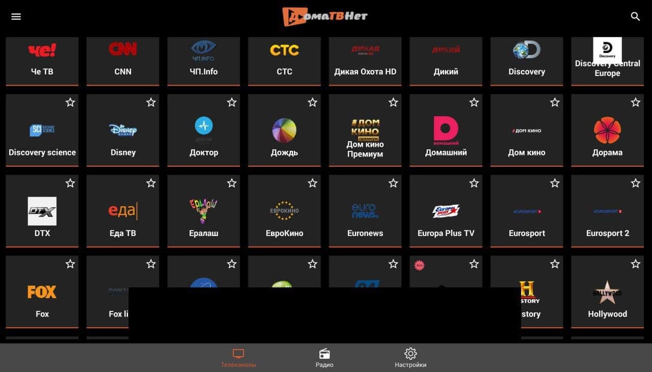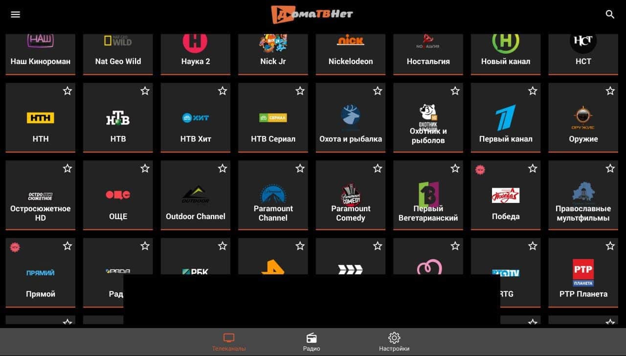 Дома ТВ Нет — бесплатные онлайт тв каналы - это функциональное бесплатное онлайн-телевидение с русскими, украинскими и казахстанскими каналами и простым интерфейсом на Андроид. Добавляйте каналы в избранное и смотрите любимые телепередачи на своем смартфоне.