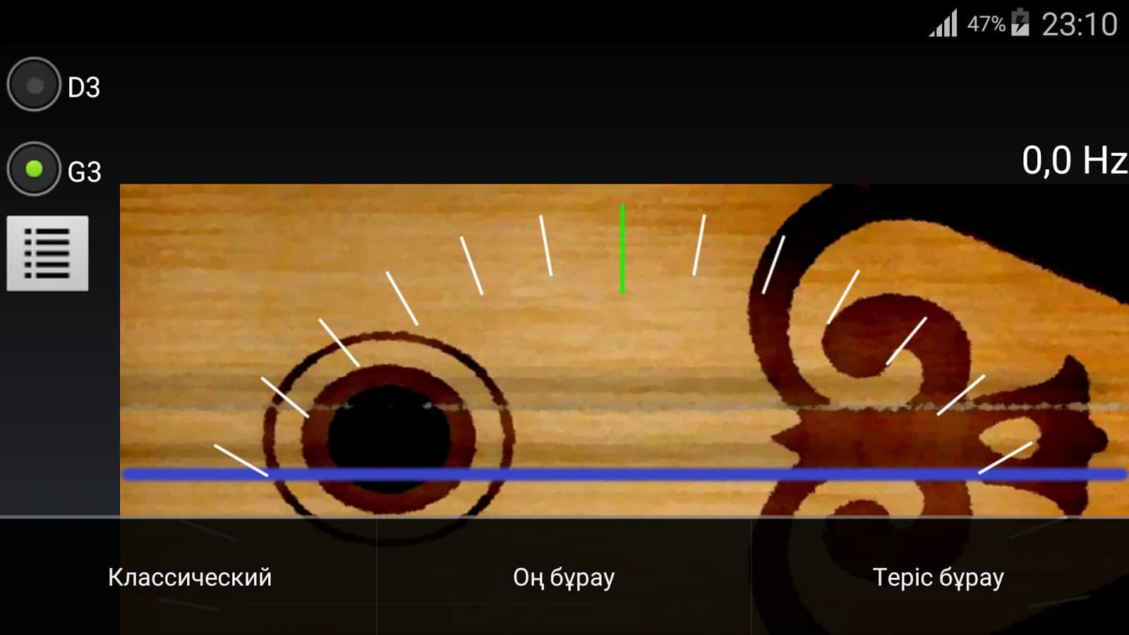 Домбра тюнер - Быстрой научитесь играть на домбре, необычном струнном щипковом музыкальном инструменте, изменив внутри приложения настройки под собственные нужды! Настройте как верхние, так и нижние струны, чтобы получить чистый звук и насладиться мелодиями, которые вы будете играть. У вас есть возможность выбрать настройку, поставьте ту, которая вам нравится и подходит больше всего: классическая или национального типа. Экспериментируйте с нажатиями, и не забывайте постепенно учиться различным мелодиям, чтобы совсем скоро улучшить свои навыки игры.