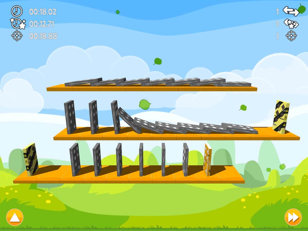 Domino Run 2 – увлекательная игра на андроид, где вы должны уронить все фишки домино. Наши фишки находятся на различных платформах, и вашей задачей будет продумать каждый свой шаг, перед тем как пытаться опрокинуть все домино. Каждый новый уровень подарит вам совершенно новый опыт игры, пройдите все 150 уровней и поборитесь за лучшие места в таблице лидеров. Перемещайтесь по четырем красивым мирам и с помощью редактора уровней создавайте свои индивидуальные уровни и делясь ими с друзьями. Получайте многочисленные достижения за удачно пройденные уровни и решайте задачки. Все домино в этой игре отличаются различным поведением.