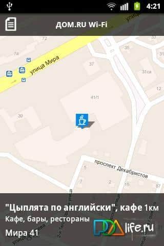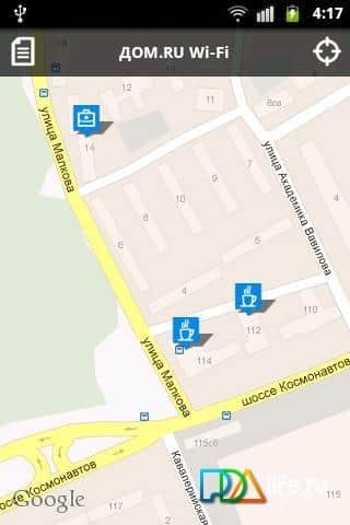 ДОМ.RU Wi-Fi для андроид от разработчика ЭР-Телеком Холдинг. Легко и без проблем с помощью приложения найдите ближайшую к вам точку доступа ДОМ.RU Wi-Fi, подключитесь к ней и бесплатный беспроводной интернет со скоростью до 54 Мбит/сек уже у вас! Приложение позволяем сортировать точки доступа по степени удаленности и по типу заведений. Все что вам необходимо - это поддержка вашим устройством Wi-Fi.
