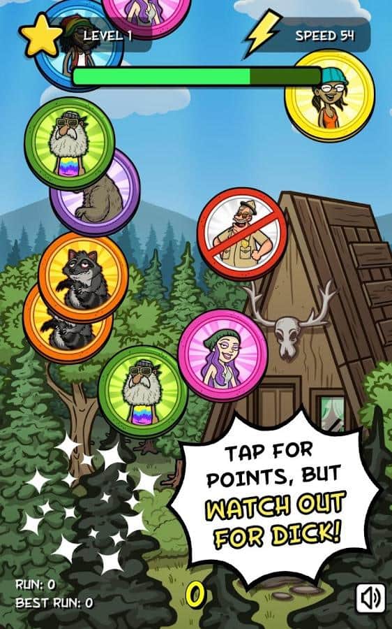Настоящая реакция и скорость нажатия на экран потребуется от геймера в Don't Touch Ranger Dick. Друзьям игрока нужно сбежать от рейнджера Дика, поэтому на экране появляются их изображения и изображения животных. Обязательно нужно успеть поймать друга и остановить убегающих питомцев, а также вовремя увидеть рейнджера и не трогать его ни в коем случае! Спасет всю компанию только реакция геймера и его умение быстро рассмотреть картинку, чтобы точно не обратить внимания Дика на группу убегающих людей и не вызвать его подозрения уходом животных.