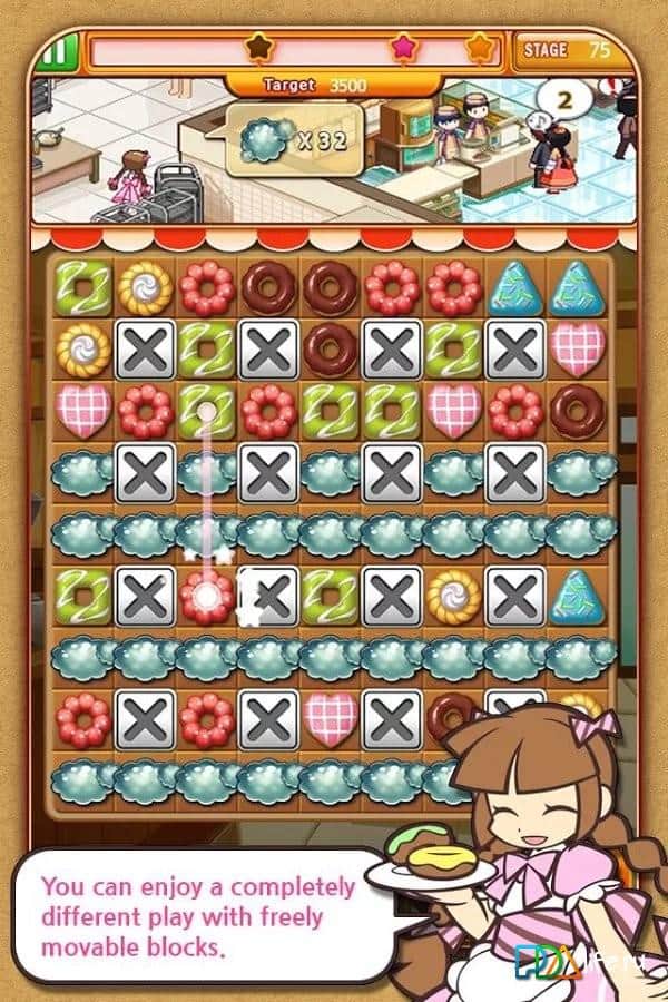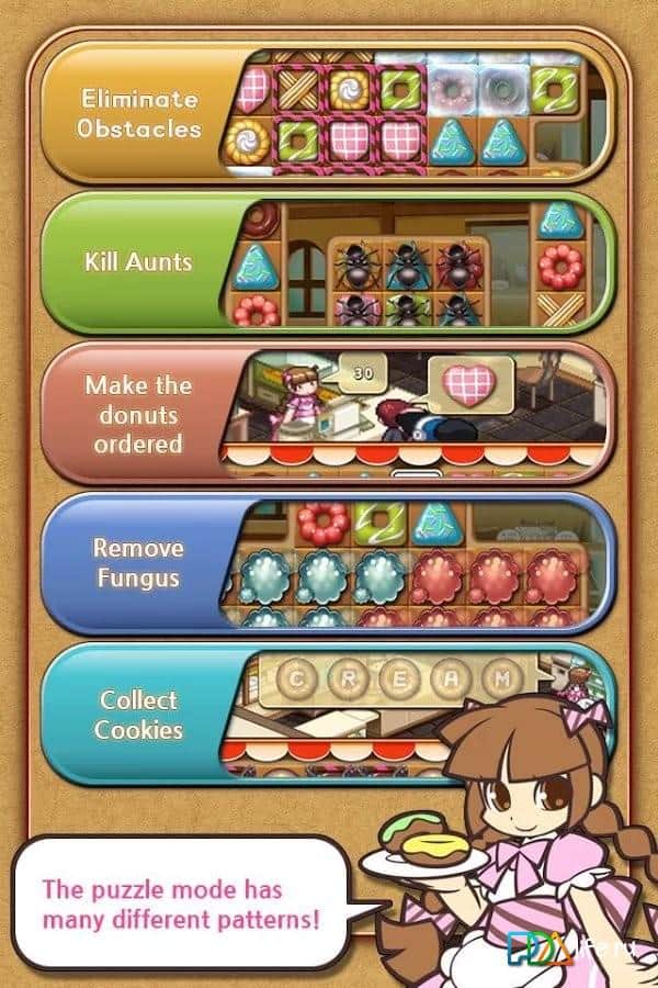 Donut Bakery Slide Puzzle - Новая игра на андроид по типу три в ряд. Эта игра приготовила вам массу сюрпризов: пять различных режимов игры с различными задачами и целями. Также по ходу прохождения вы будите зарабатывать игровую валюту, с помощью которой вам предстоит построить собственное кафе. Всего в игре сто девяносто пять уровней, которые не дадут вам заскучать.