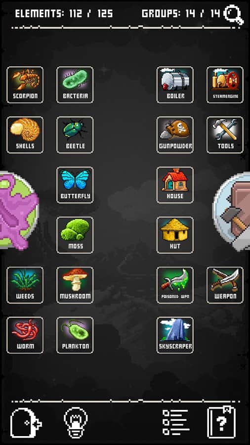 Doodle God: 8-bit Mania – всем известная и очень популярная игра на андроид, теперь и в пиксельной графике. Если вы любите игры сделанный в ретро и пиксельном стиле, то эта игра для вас. Как и предыдущей игре, вам предстоит создавать вселенную, смешивая и сочетая между собой различные предметы, механизмы, животных и стихий. В этой игре вы станет богом которому подвластно все, но будьте осторожны ведь каждый неверный ваш шаг может привести планету к апокалипсису и вымиранию всех видов. Творите и наблюдайте за всем происходящим на земле, а также прислушивайтесь к умным цитатам и пословицам которые помогут вам на всем протяжении игры выбирать правильное решение.