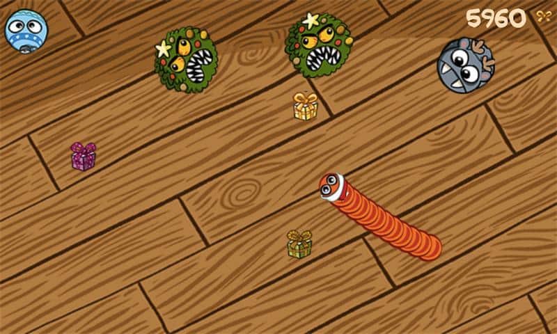 Doodle Grub Christmas Edition – управляйте передвижением гусеницы по экрану вашего телефона или планшета и поедайте различные фрукты. В этой игре вашей главной задачей будет собрать как можно больше яблок разбросанных по экрану и вырастить свою гусеницу до небывалых размеров. С помощью наклонов телефона перемещайте гусеницу по экрану и обходите многочисленных монстров и врагов, которые не против будут вами подкрепится. Если вы столкнетесь с монстром, то игра для вас закончиться и придется начинать все с начала. Соберите все яблоки и установите свой рекорд в этой игре, соревнуясь с друзьями. Игра порадует игроков многочисленными темами оформления и забавными персонажами.