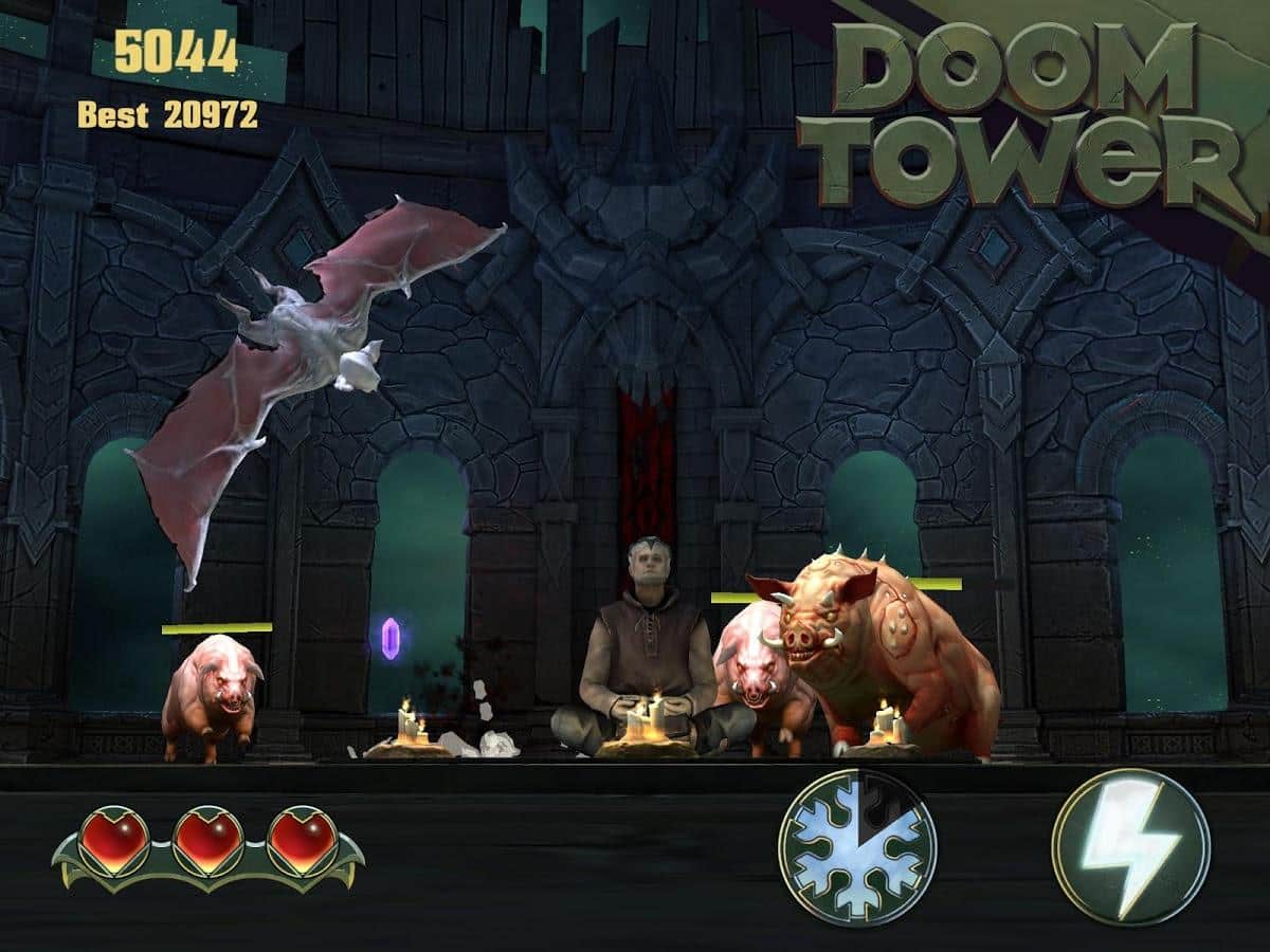 Doom Tower - в тёмной далекой башне есть врата, через которые слуги дьявола хотят попасть в наш мир и вы единственный кто преграждает им путь. Сражайтесь до последнего вздоха и убивайте как можно больше врагов. Сжигайте их, накладывайте древние заклинание и убивайте всеми доступными вам способами. Собирайте драгоценные камни для того чтобы усилить вашу силу и магические способности. Чем дальше вы будете отбивать атаки, тем сильнее становятся демоны, убейте их все и станьте величайшим героем.