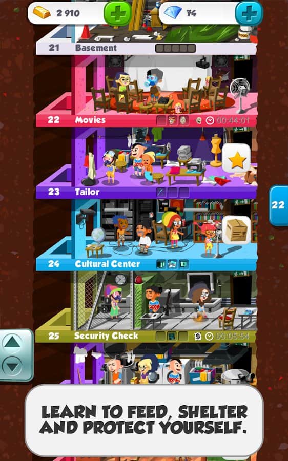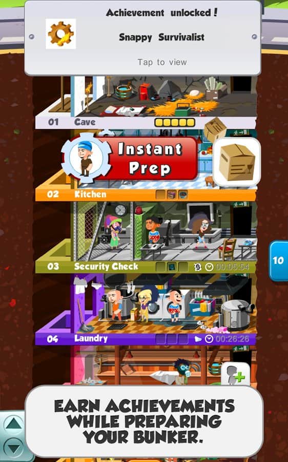 Doomsday Preppers - интересная аркада для андроид с множеством этажей. На них построена вся игра. Итак, конец света не за горами, и вам до умопомрачения нужно найти выход из ситуации. Первое, что приходит вам в голову - это закопаться под землей. Вы попадаете в многоэтажку, в которой множество комнат самого разного характера. Ваша главная цель - пройти как можно глубже! А попутно можно селить в построенные этажи желающих спастись, припахать их, чтобы не бездельничали...Вообщем создать некое подобие общежития! Создайте целый комплекс, наполненный всем, чем живет человечество над землей!