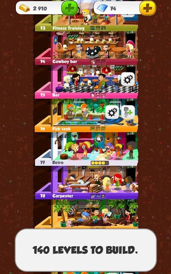 А вообще игра по большему счету ничем не отличается от других менеджер-строителей, единственное отличие в том, что тут строим тупо вниз, а не по площади.
