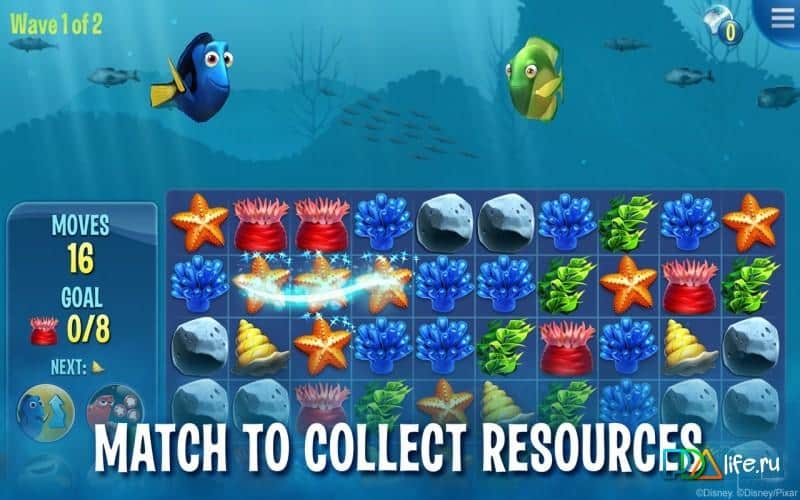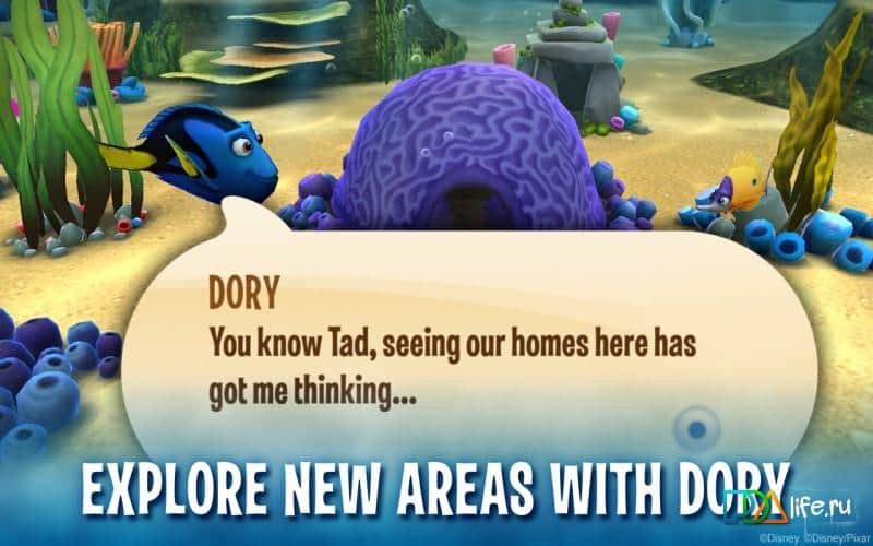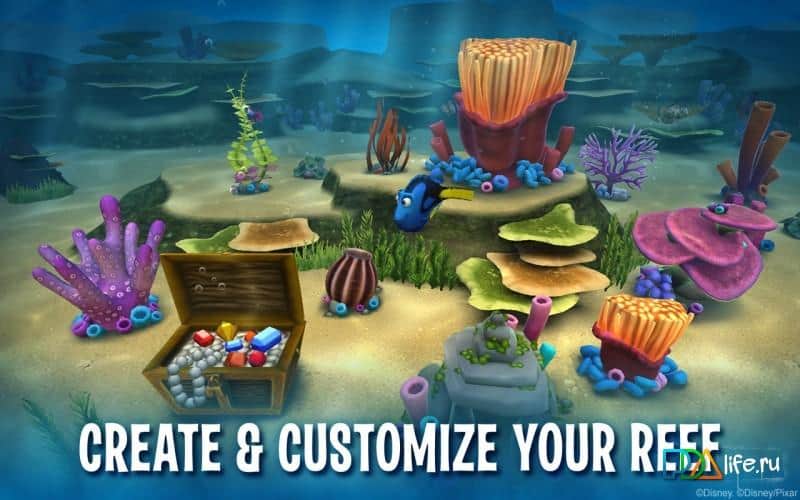 Dory's Reef - Погрузитесь в чудесный подводный мир и начните исследование вместе с Дорри и её новыми друзьями. В игре вас ждет множество удивительных приключений. Получайте все новые награды, исследуйте различные области океана, начните собирать коллекцию рыб и наконец постройте свой уникальный риф!